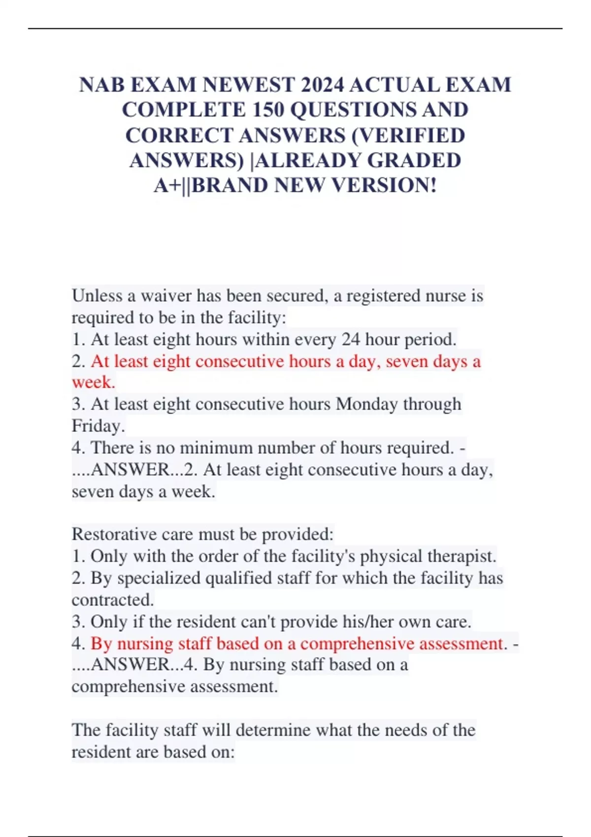 NAB EXAM NEWEST 2024 ACTUAL EXAM COMPLETE 150 QUESTIONS AND CORRECT ANSWERS (VERIFIED ANSWERS) |ALREADY GRADED A+||BRAND NEW VERSION!