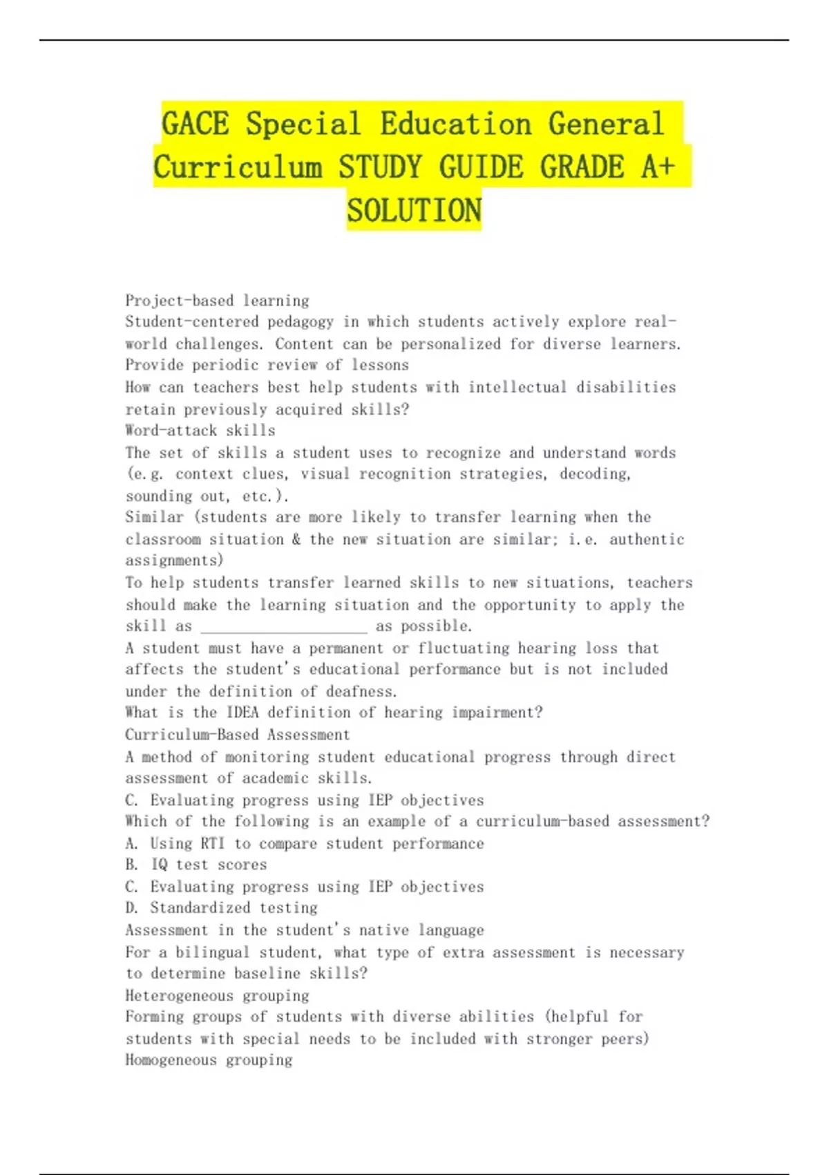 GACE Special Education General Curriculum STUDY GUIDE GRADE A+ SOLUTION