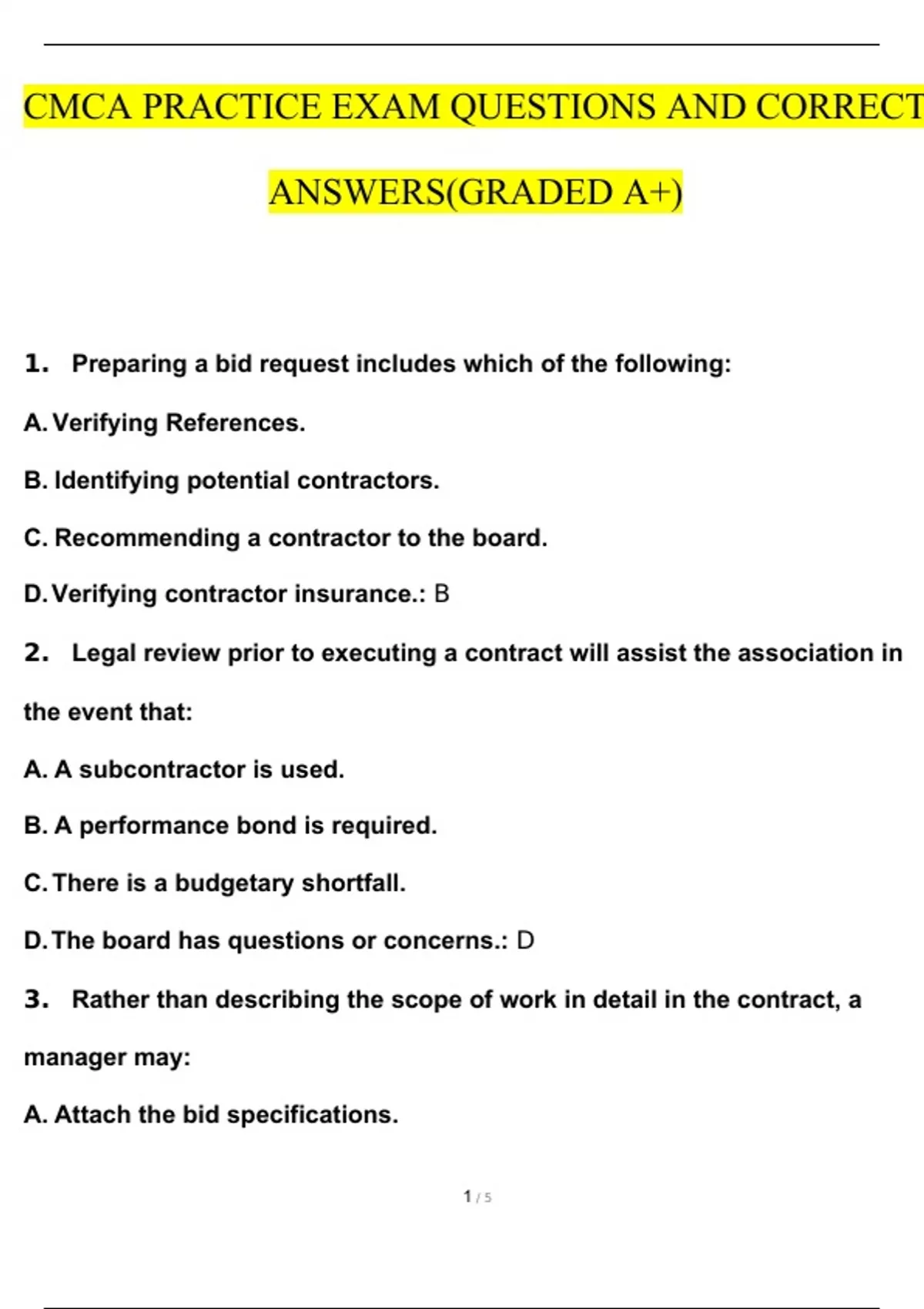 CMCA PRACTICE EXAM QUESTIONS AND ANSWERS (LATEST UPDATE) ALREADY GRADED A.