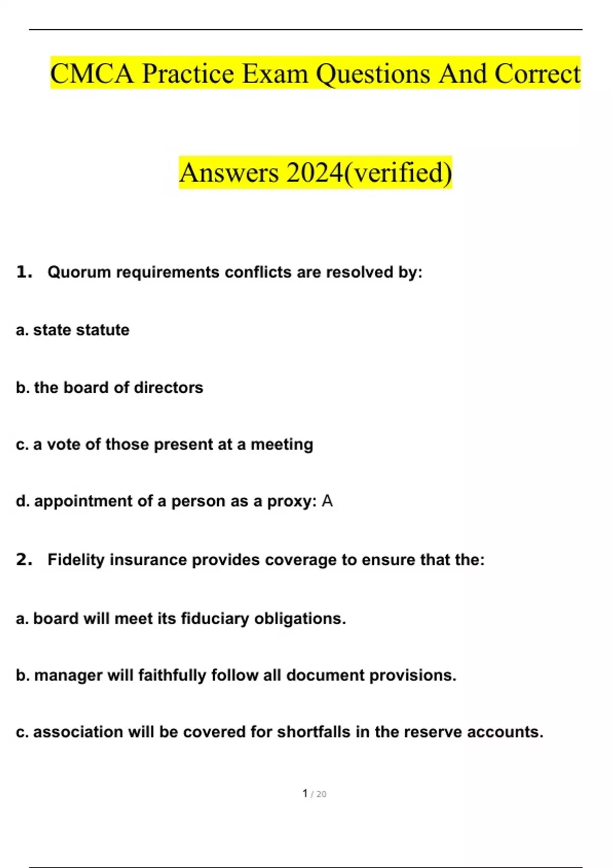 CMCA Practice Exam Terms/Questions & Answers 100% Verified