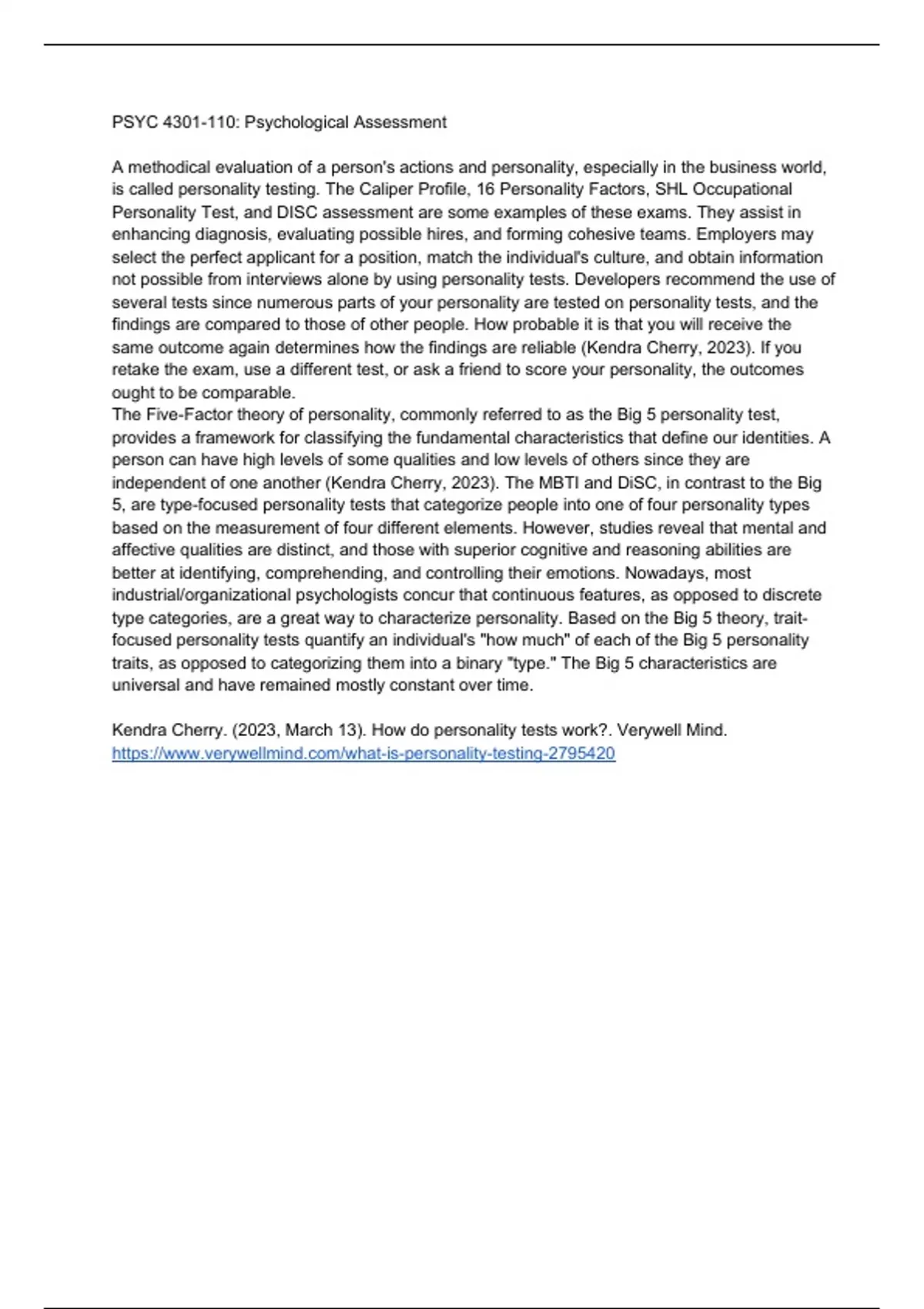 PSYC 4301-110: Psychological Assessment. How do personality tests work?
