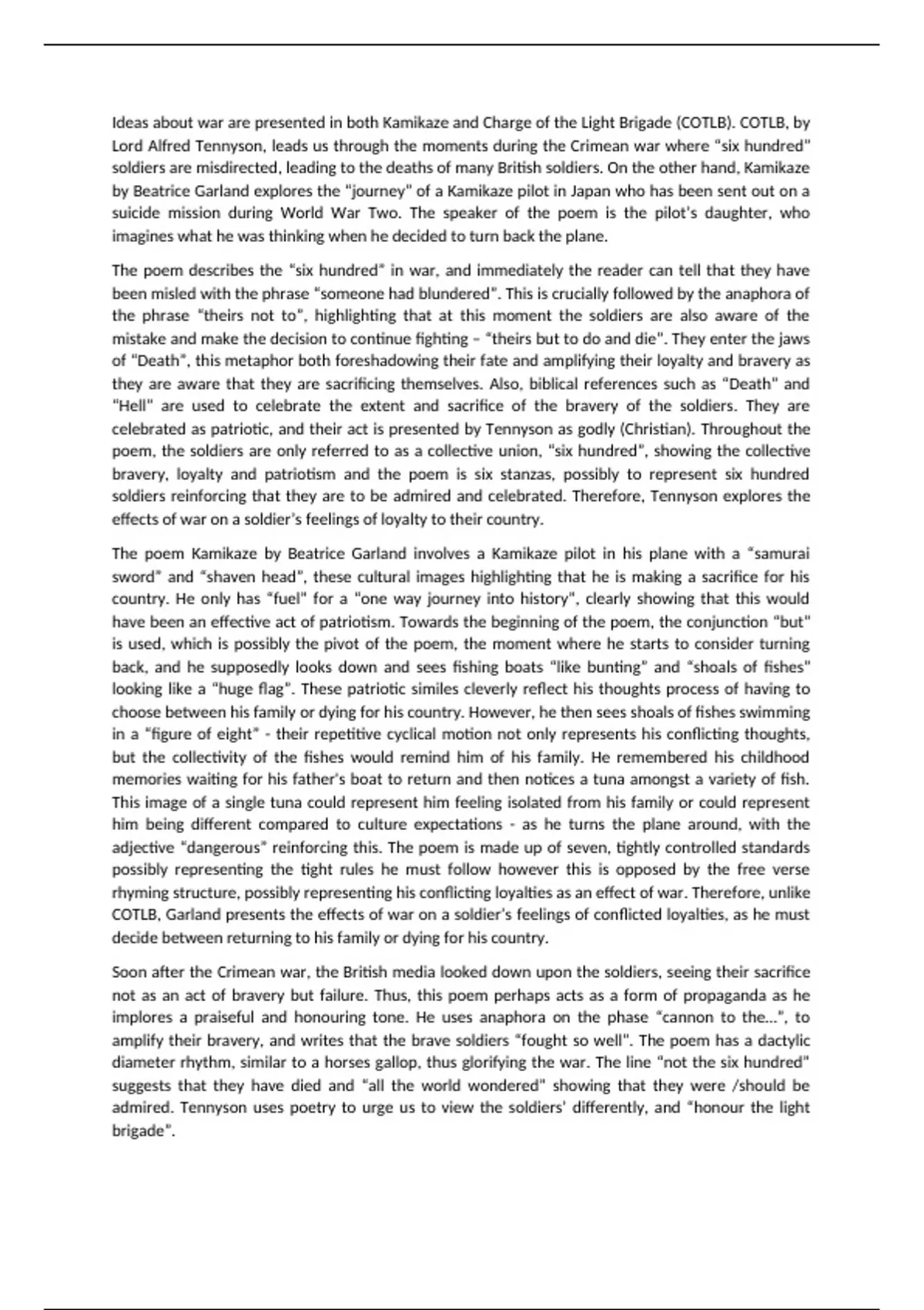 Grade Nine exemplar: Comparing Charge of the Light Brigade vs Kamikaze