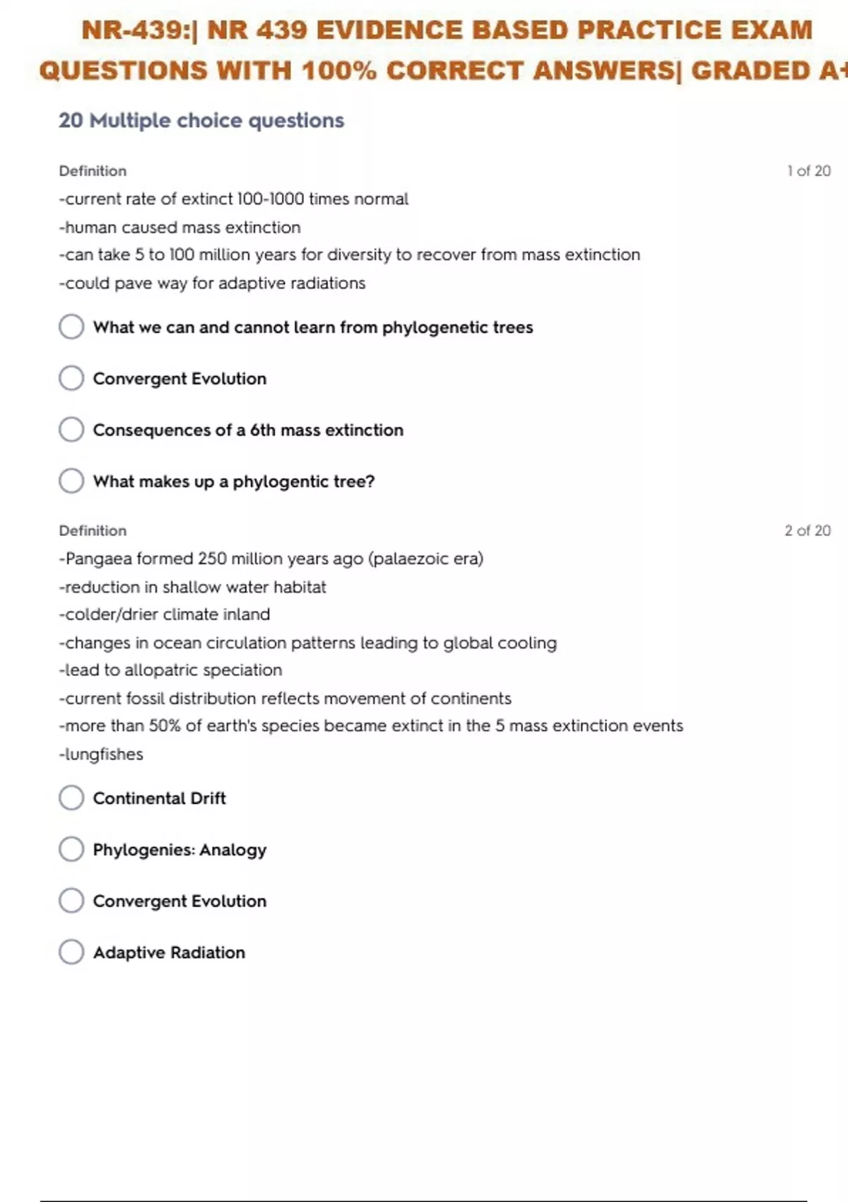 NR-439:| NR 439 EVIDENCE BASED PRACTICE GRADED A+ EXAM 8