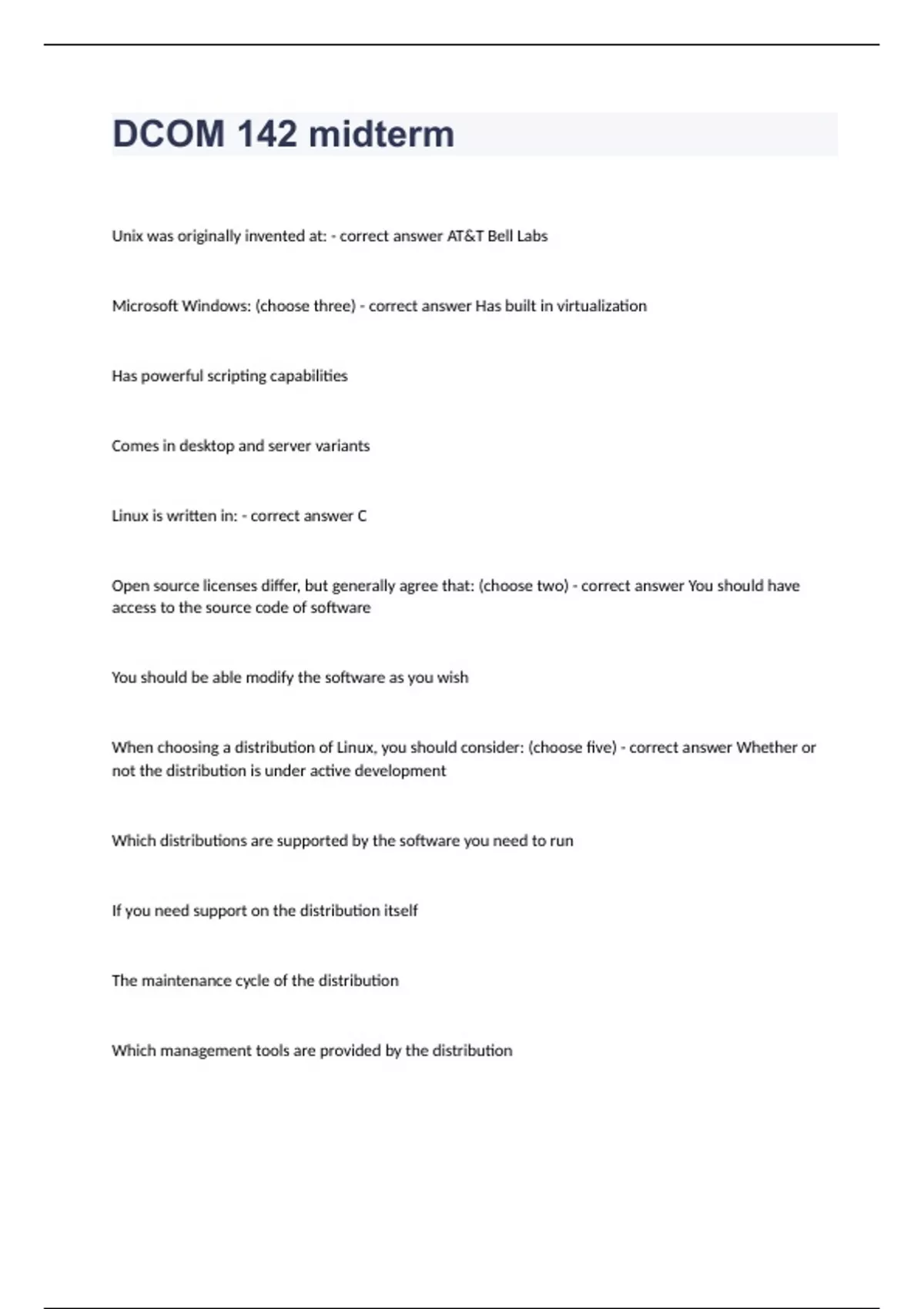dcom 142 midterm questions and answers verified 20
