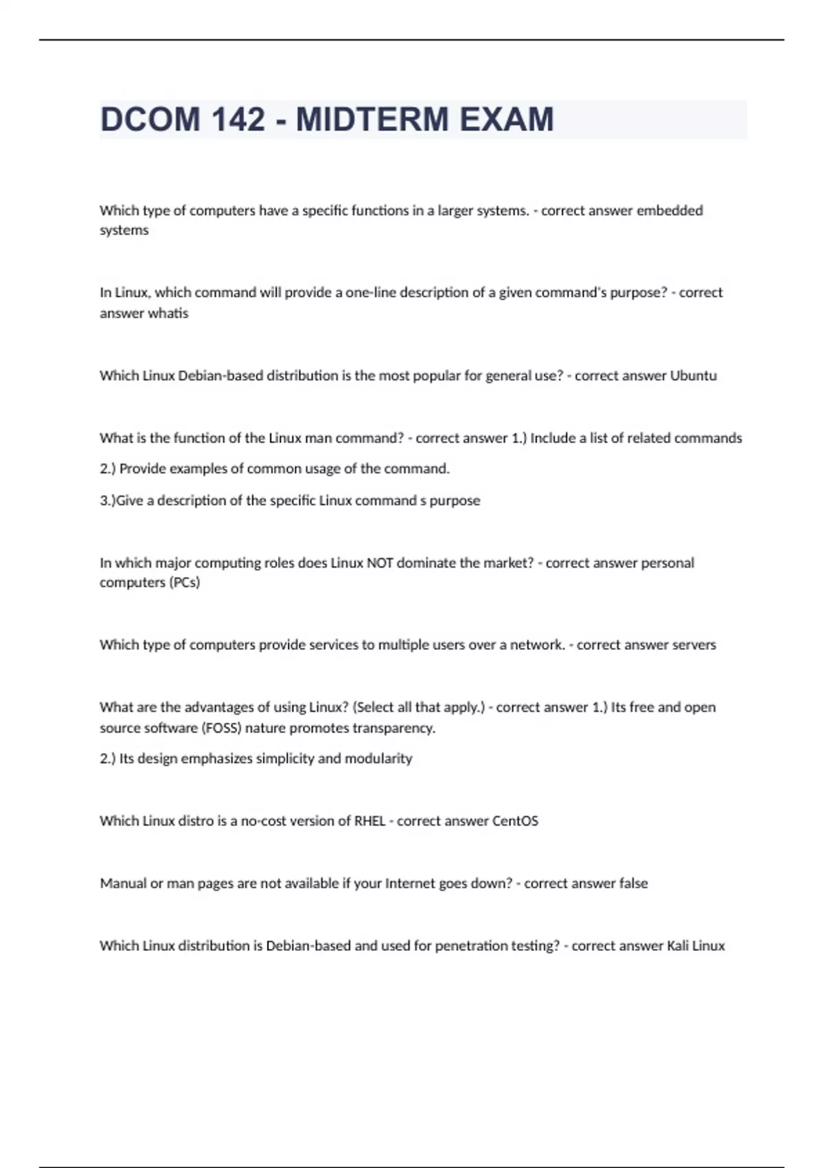 DCOM 142 - MIDTERM EXAM questions and answers verifed 2024