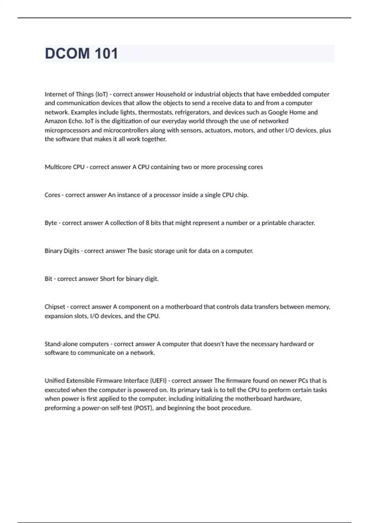 DCOM 101 questions and answers verifed 2024