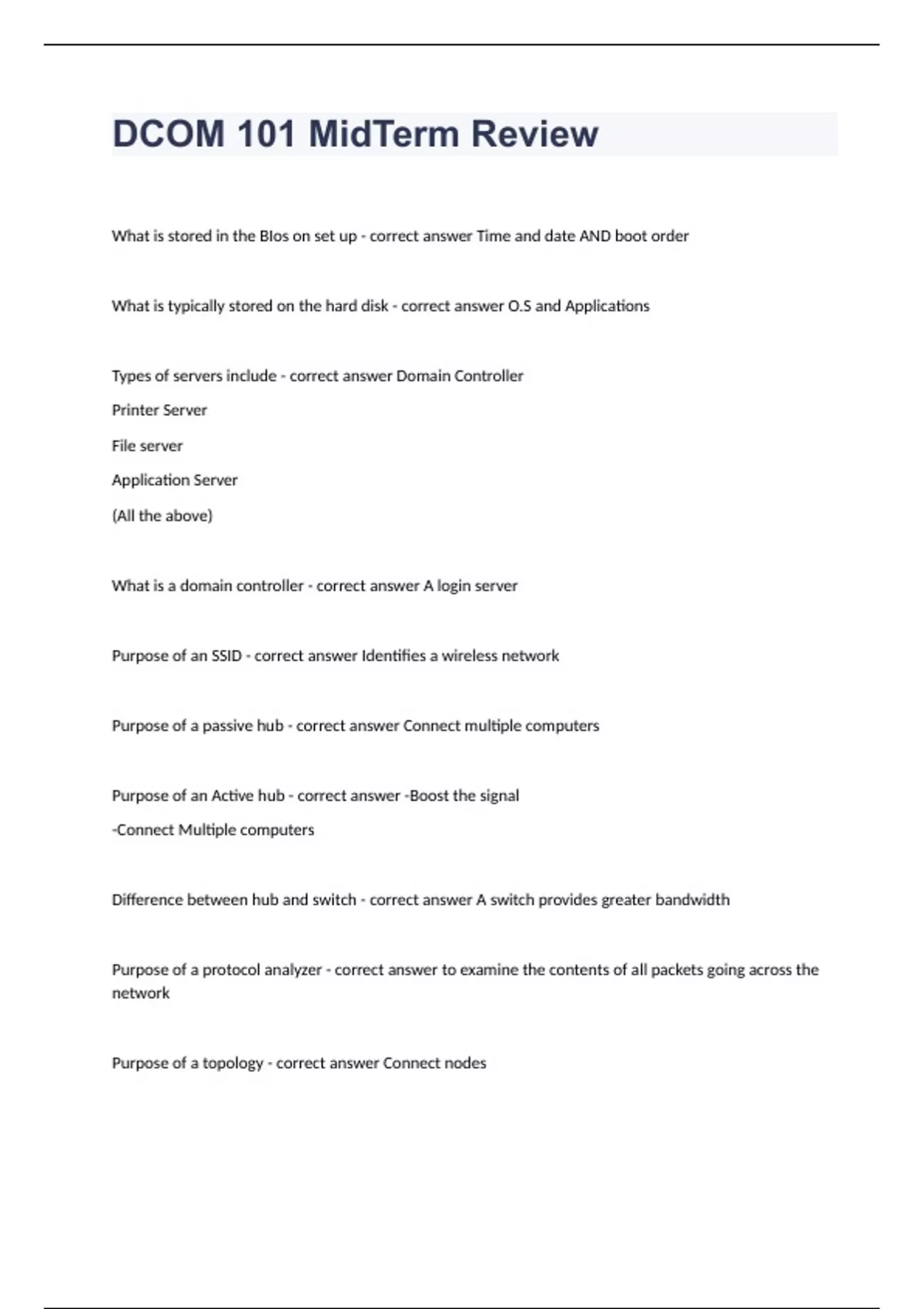 dcom 101 midterm review questions and answers cert