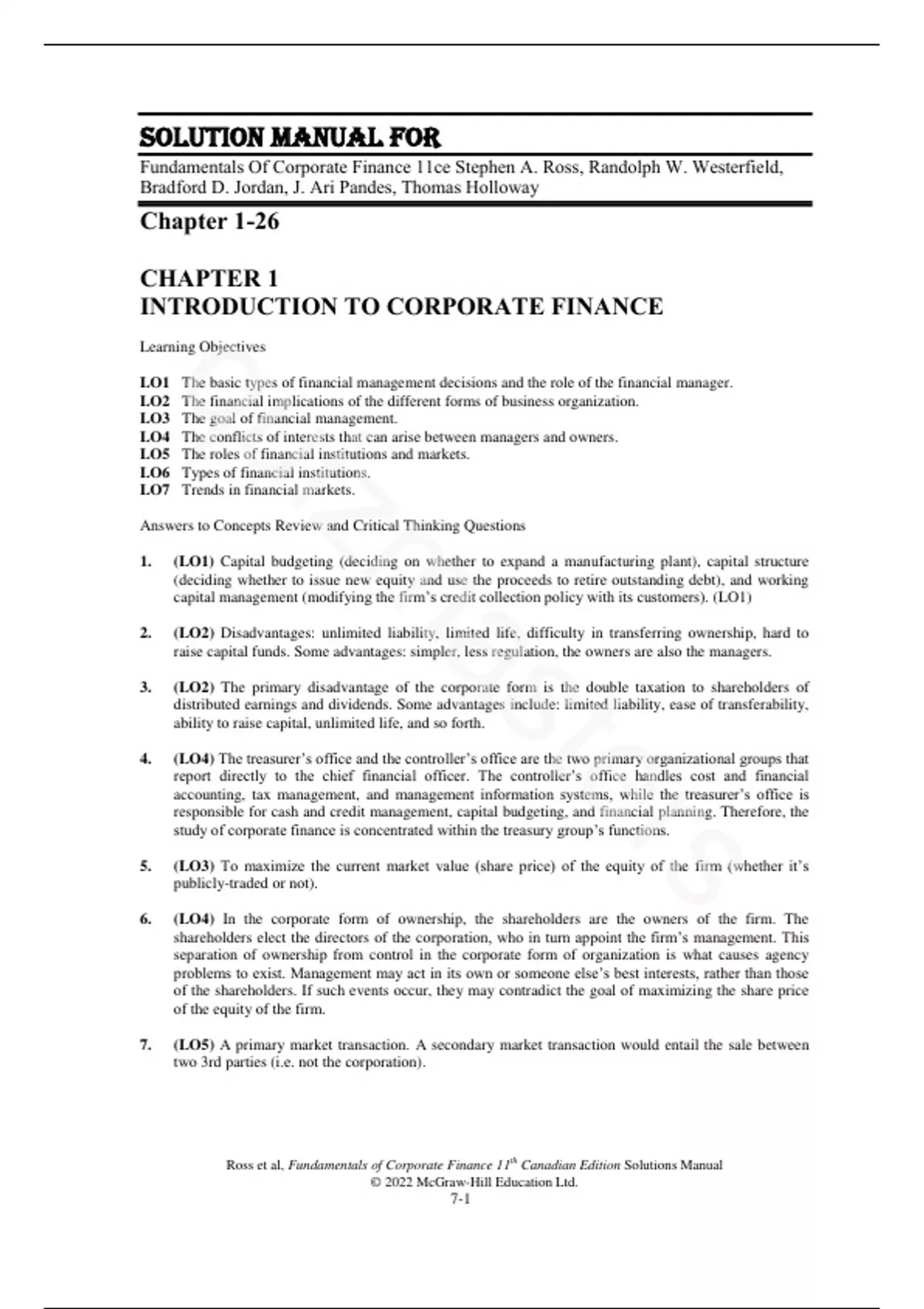 Solution Manual for Fundamentals Of Corporate Finance 11ce Stephen A. Ross, Randolph W. Westerfield, Bradford D. Jordan, J. Ari Pandes, Thomas Holloway, Chapter 1-26