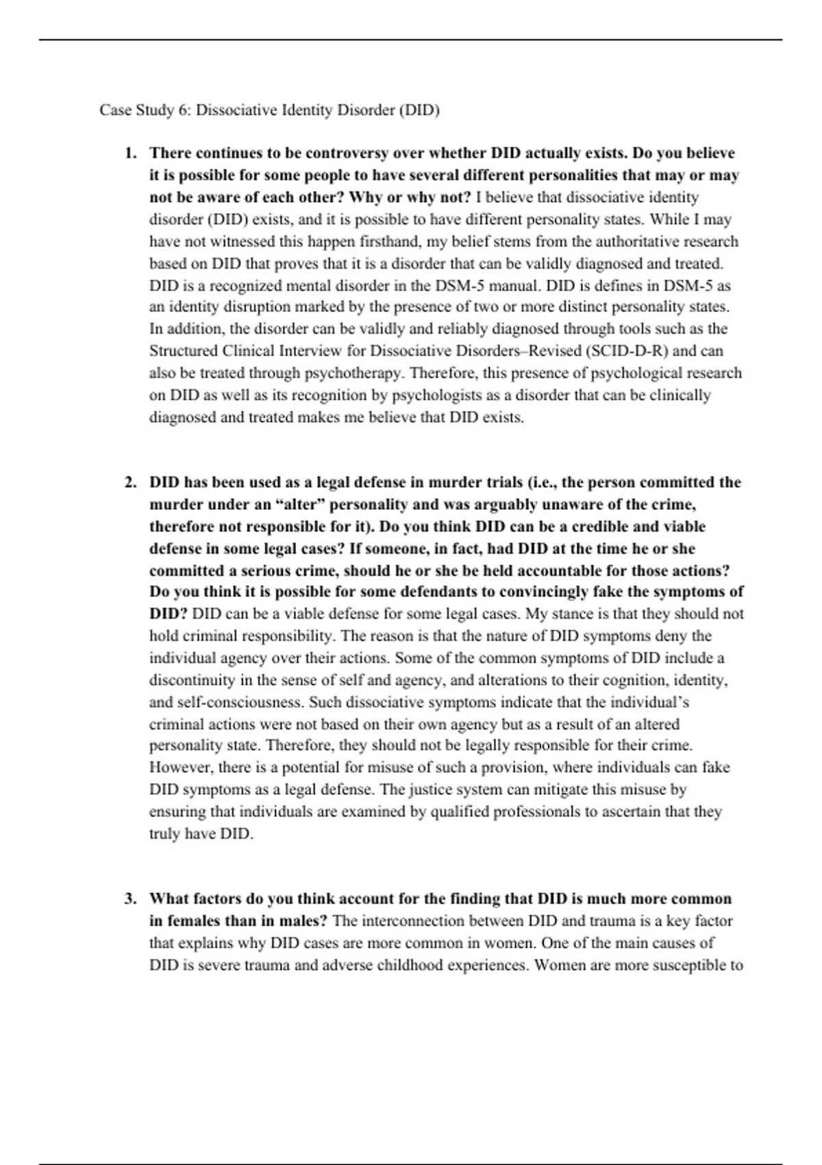 Dissociative Identity Disorder, Multiple Personality Disorder questions and answers. Case study of DID.