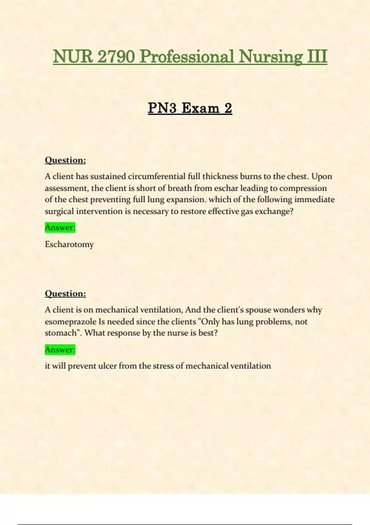 Exam 2: NUR2790 / NUR 2790 (Latest 2024 / 2025) Professional Nursing III / PN 3 Exam | Questions and Verified Answers | Already Graded A - Rasmussen