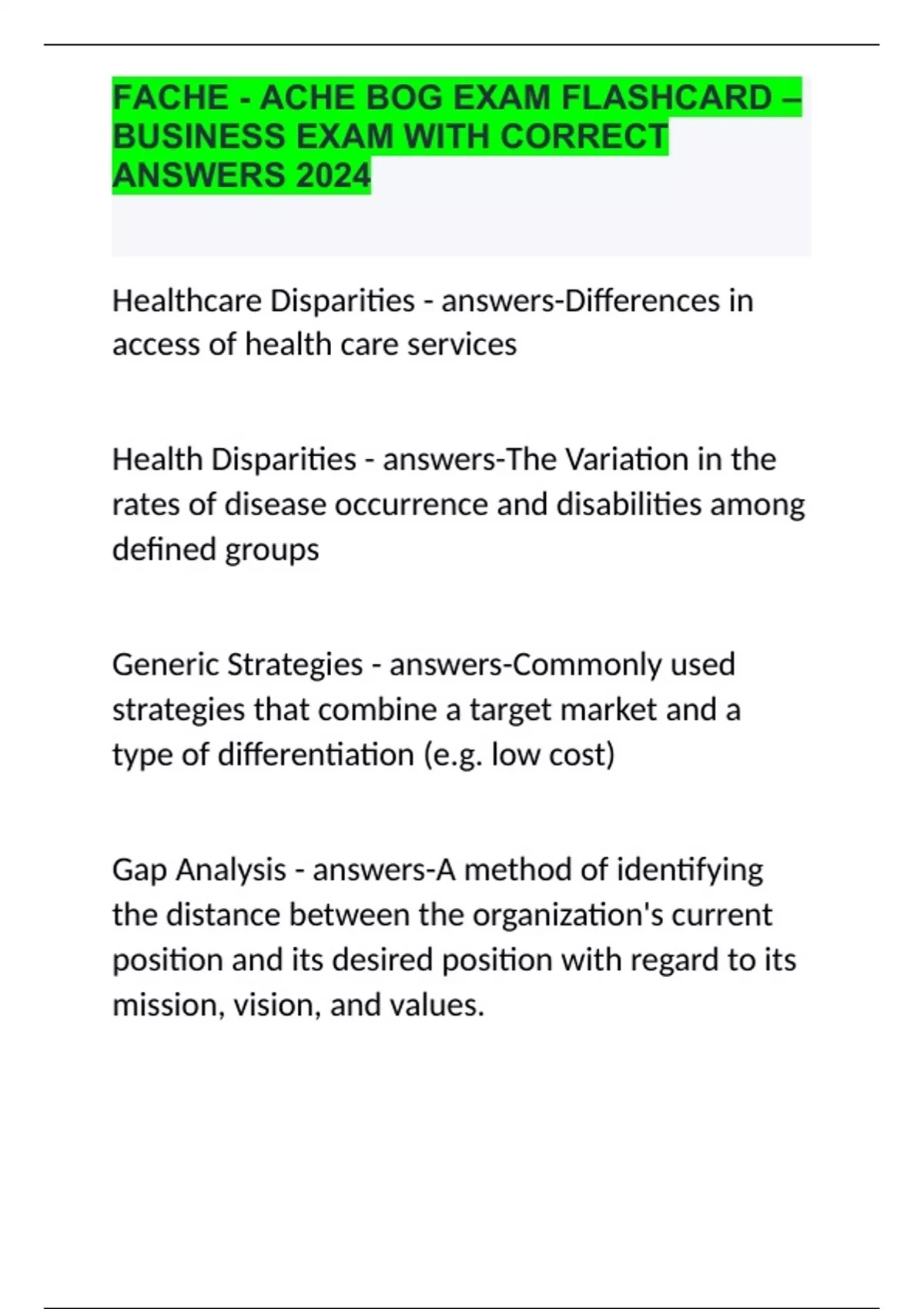 FACHE - ACHE BOG EXAM FLASHCARD – BUSINESS EXAM WITH CORRECT ANSWERS 2024