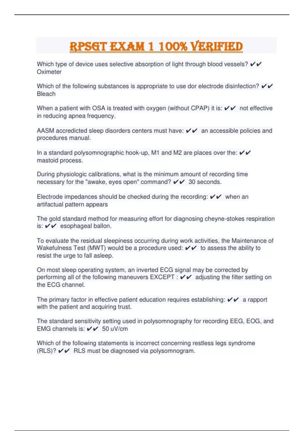 RPSGT Exam 1 100% Verified