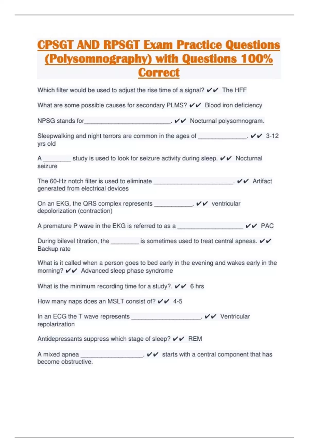 CPSGT AND RPSGT Exam Practice Questions (Polysomnography) with Questions 100% Correct