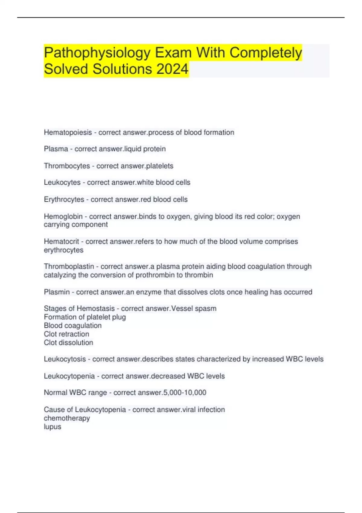 Package deal for Pathophysiology Practice Exam 1 With Correctly Solved Solutions 2024