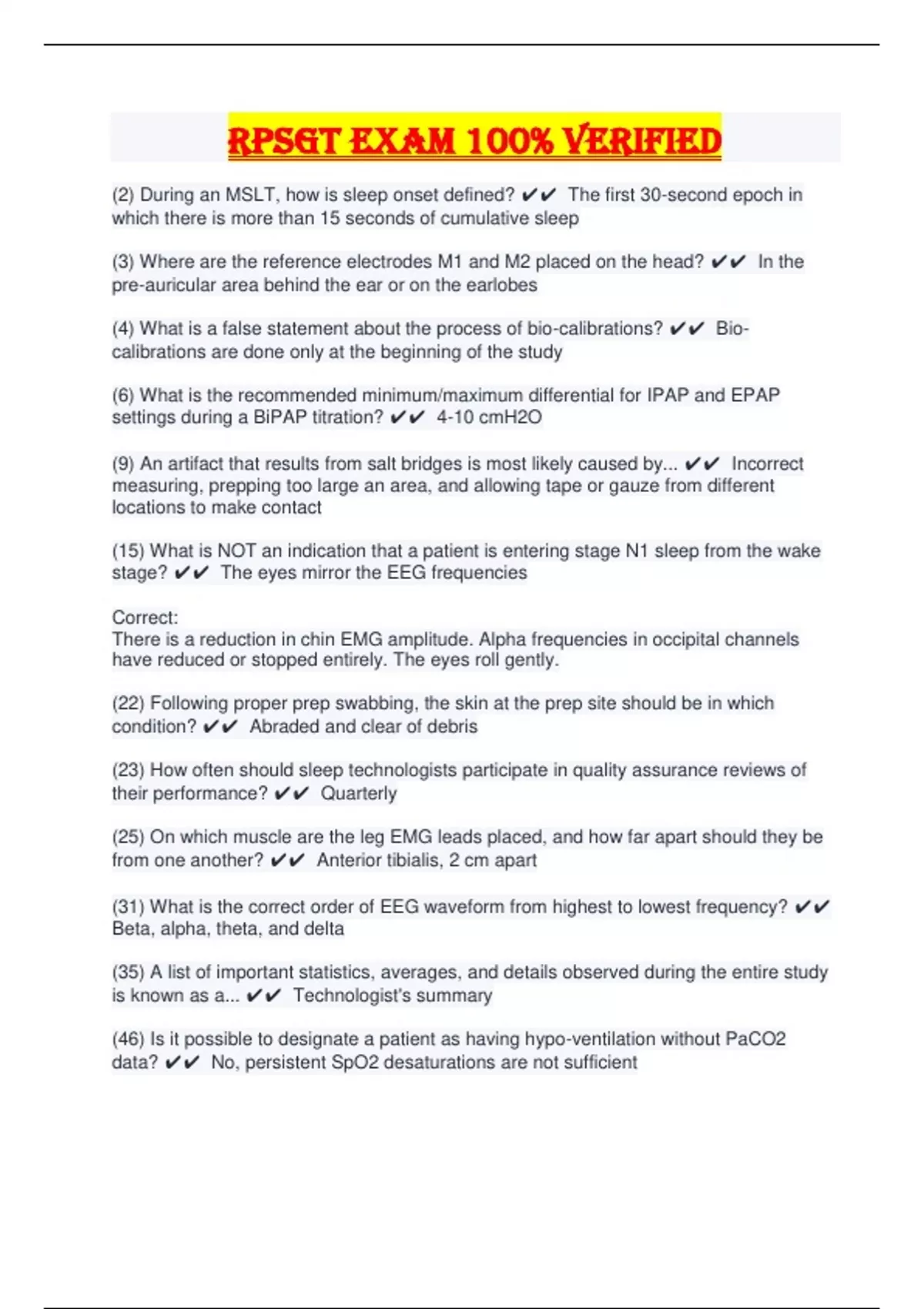 RPSGT Exam 100% Verified