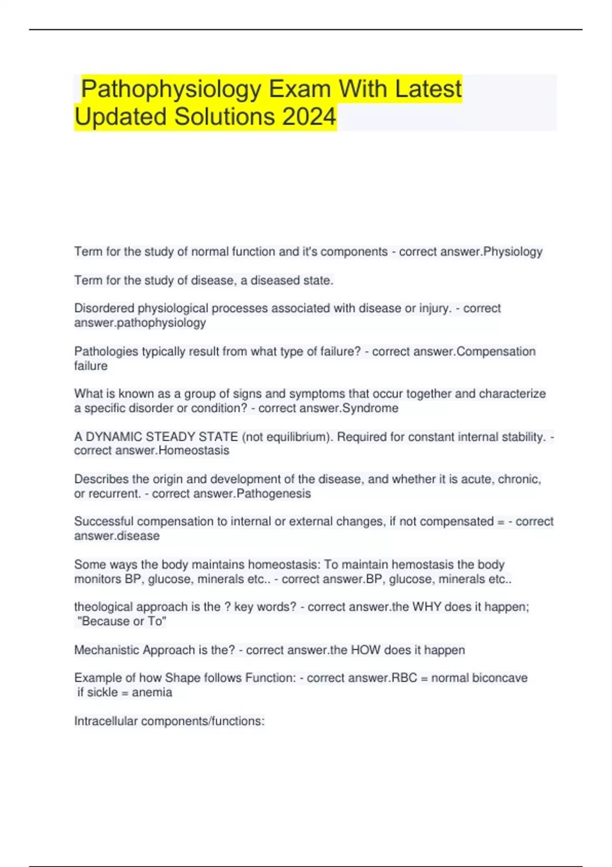 pathophysiology exam with latest updated solutions