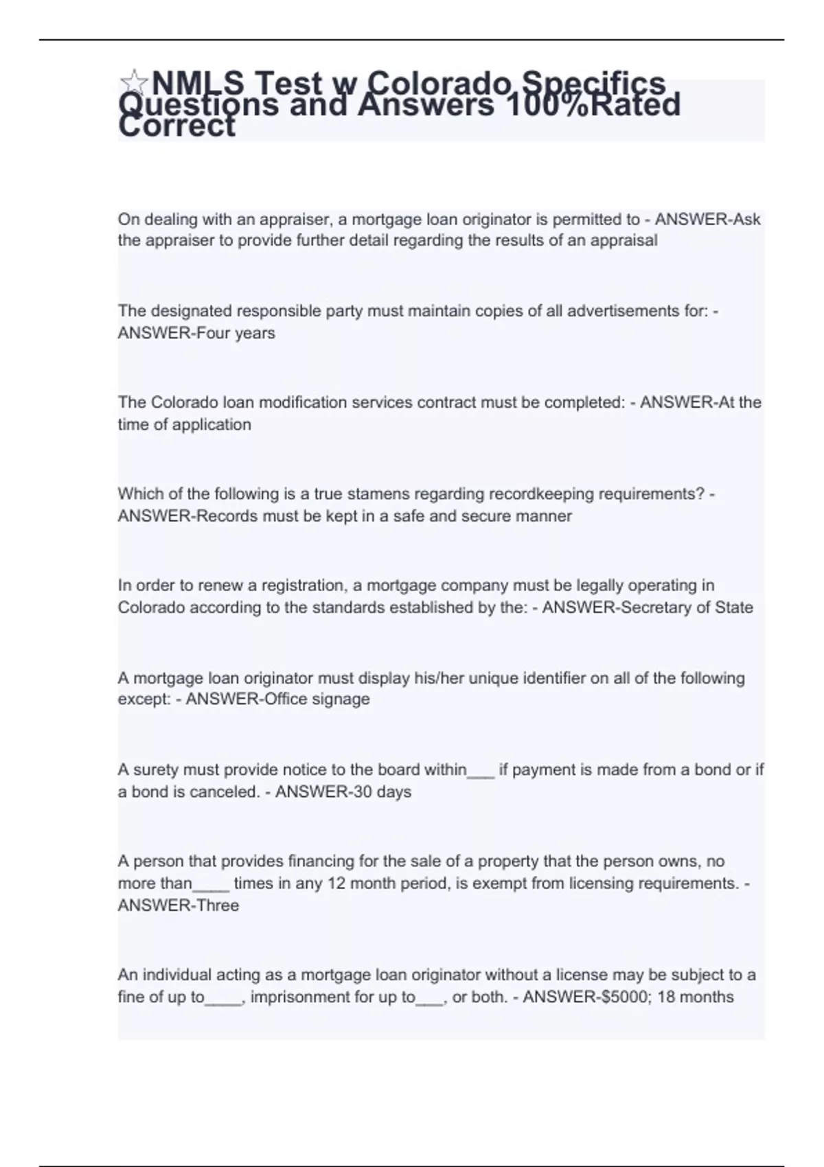 ️NMLS Test w Colorado Specifics Questions and Answers 100%Rated Correct