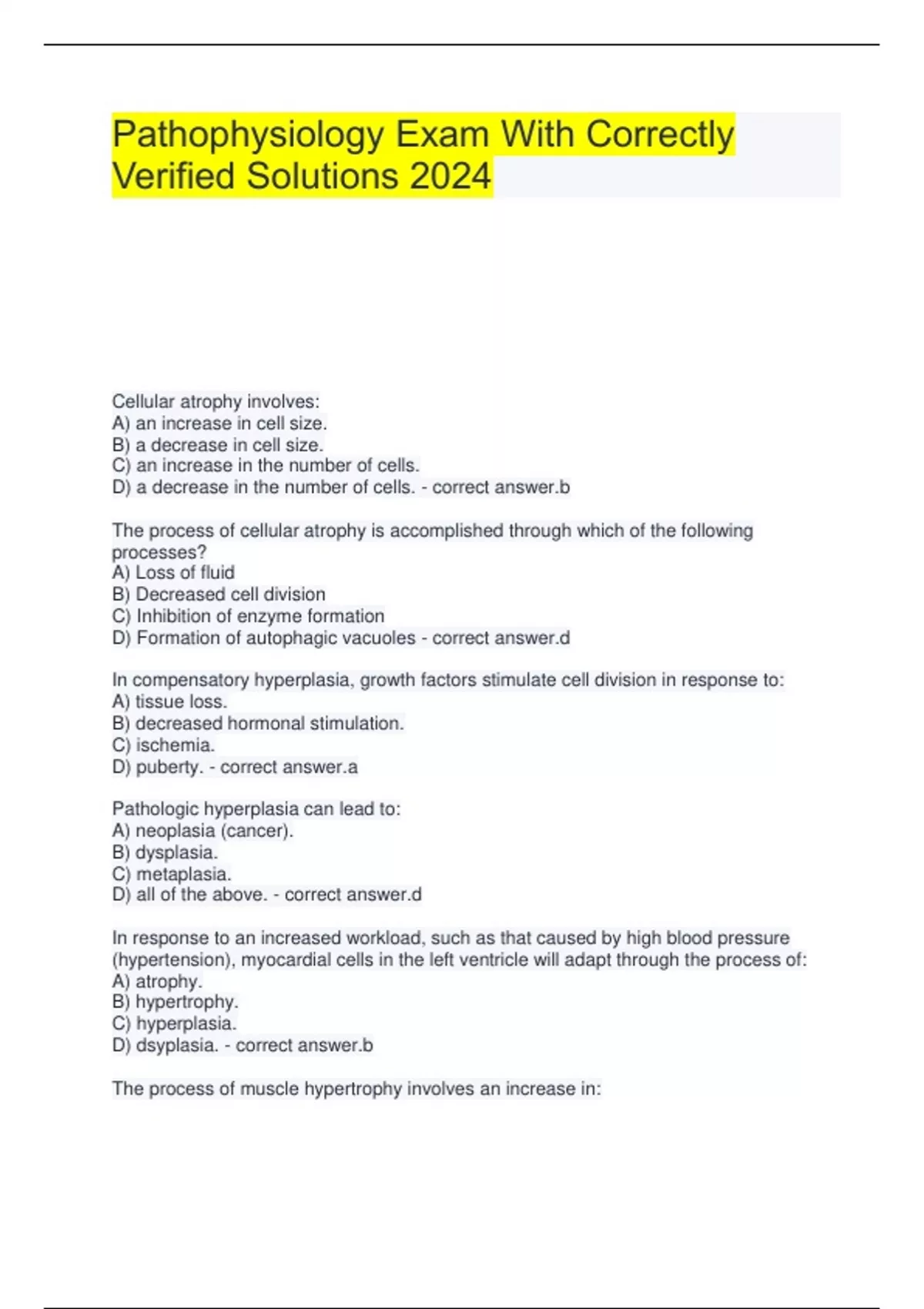 Package deal for Pathophysiology Practice Exam 1 With Correctly Solved Solutions 2024