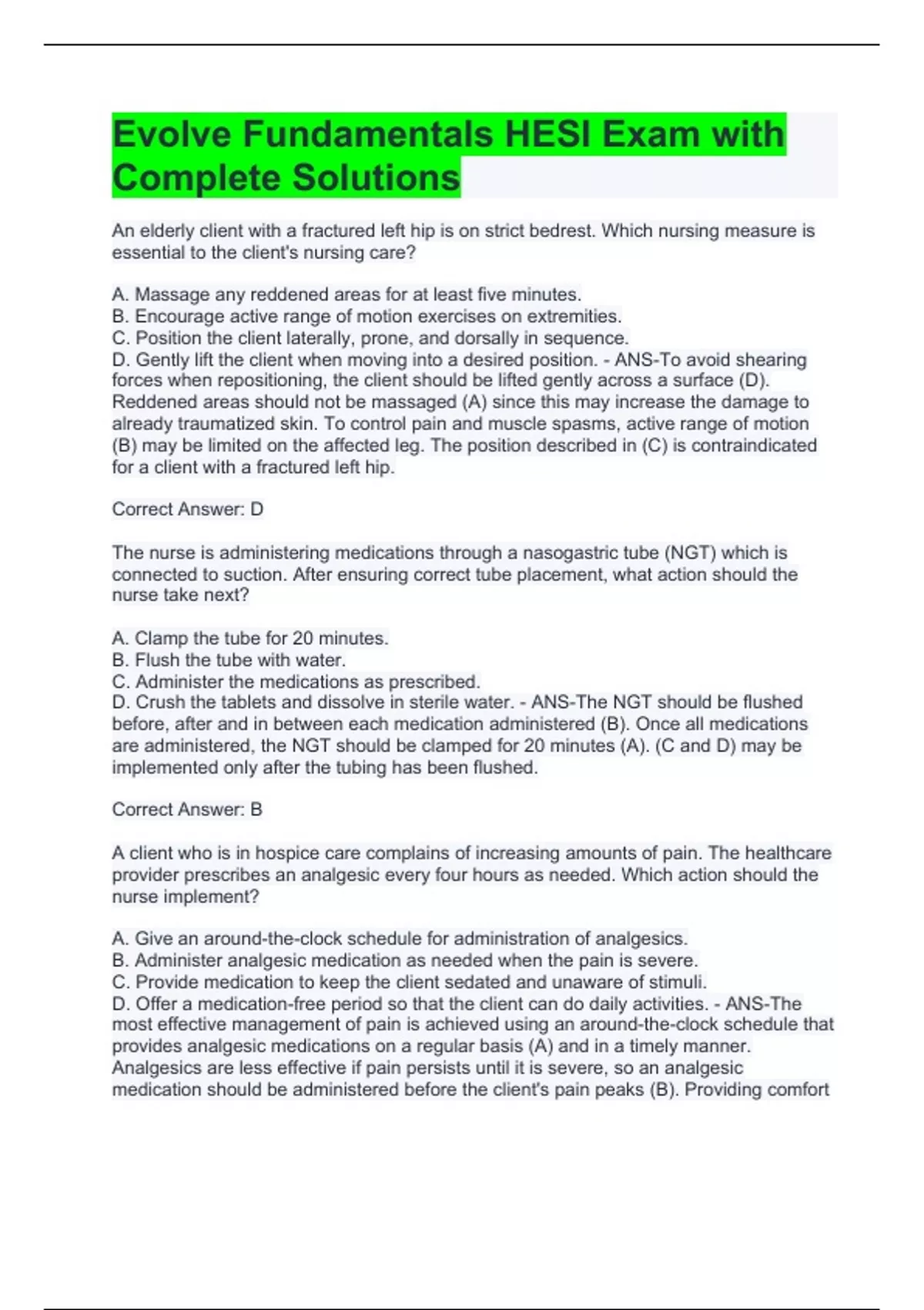 Evolve Fundamentals HESI Exam with Complete Solutions