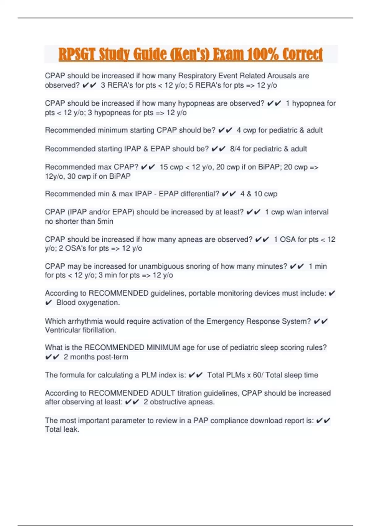 RPSGT Study Guide (Ken's) Exam 100% Correct