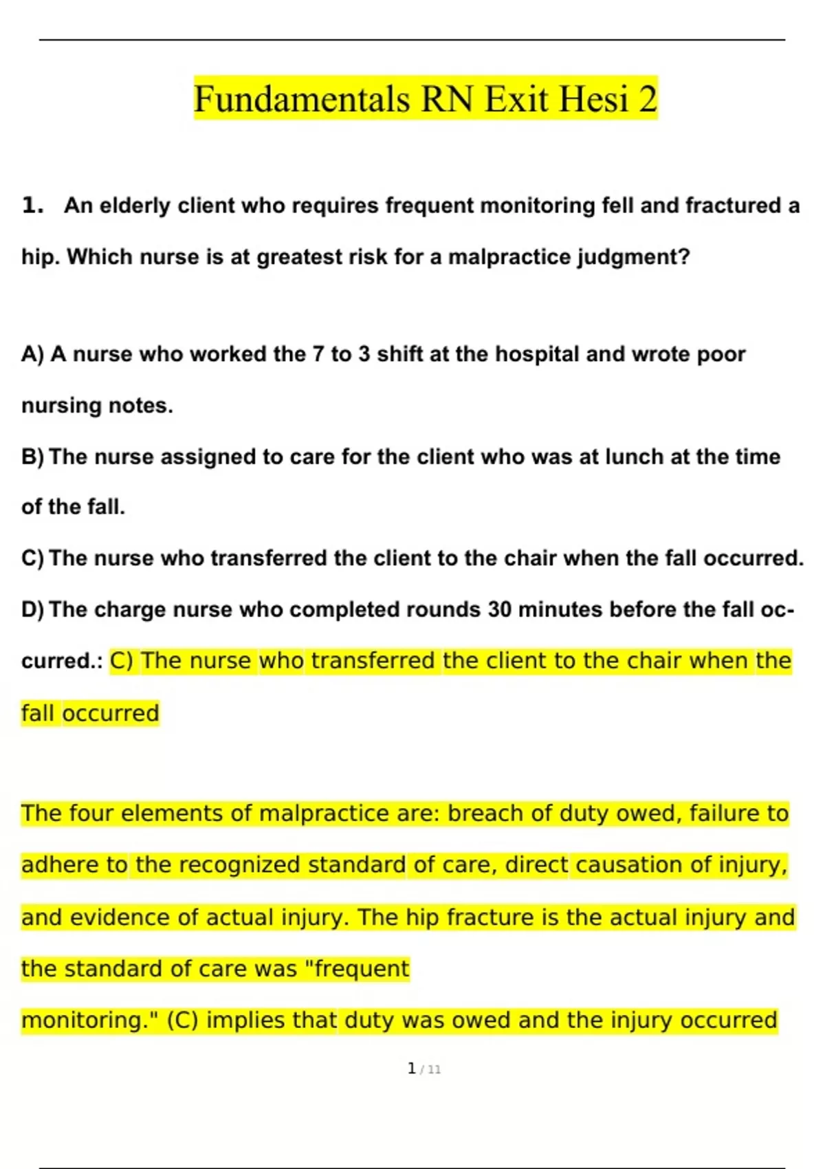 hesi rn fundamentals exit exam 2