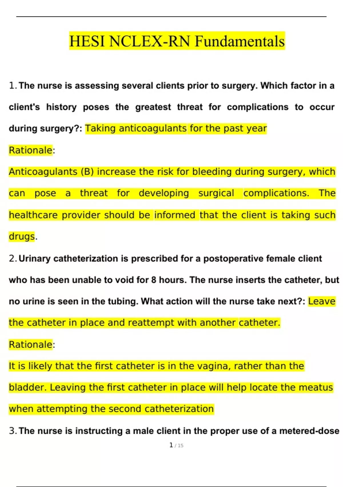 HESI NCLEX-RN Fundamentals Exam Questions and Answers (2024 / 2025) (Verified Answers)