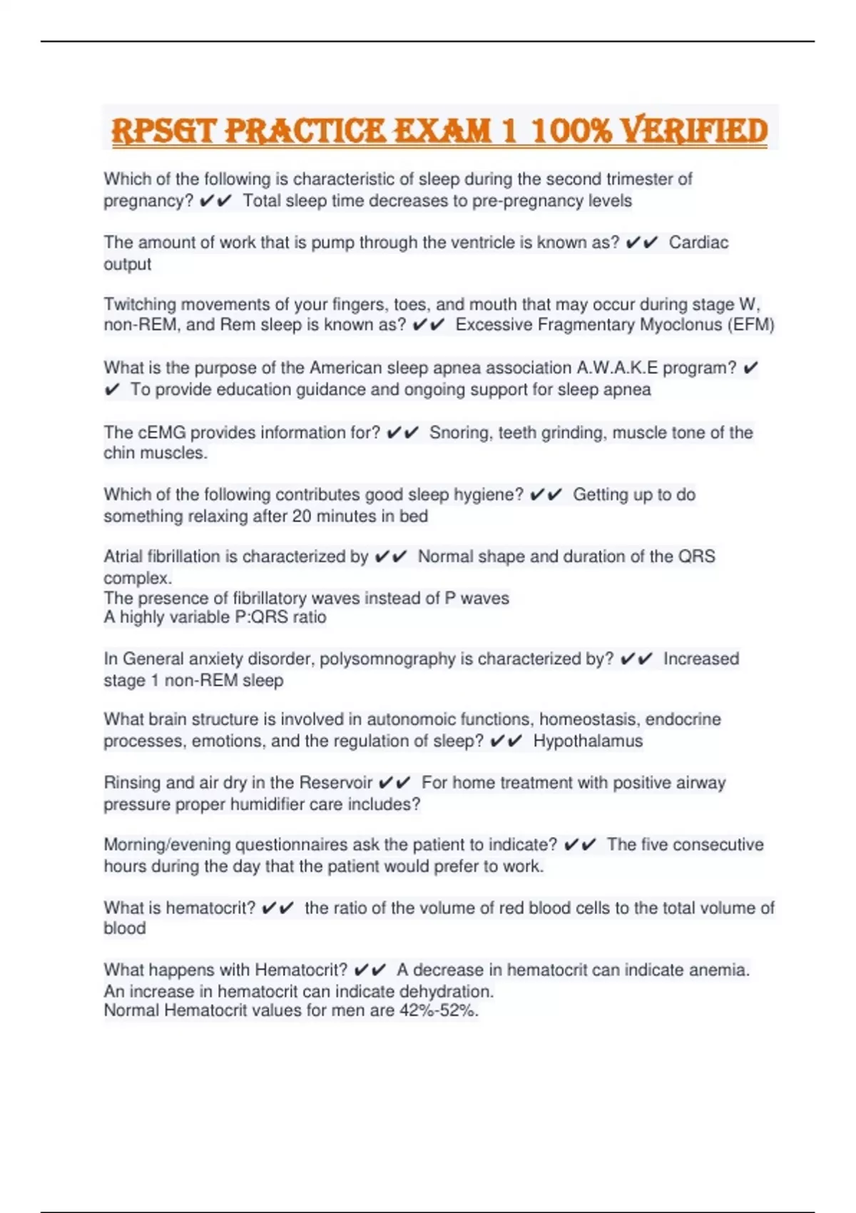 RPSGT Practice Exam 1 100% Verified