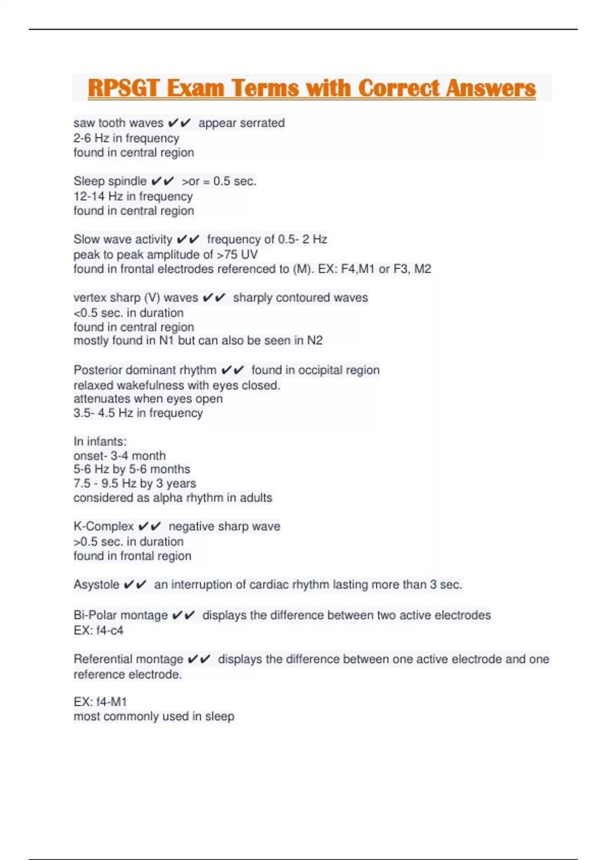 RPSGT Exam Terms with Correct Answers