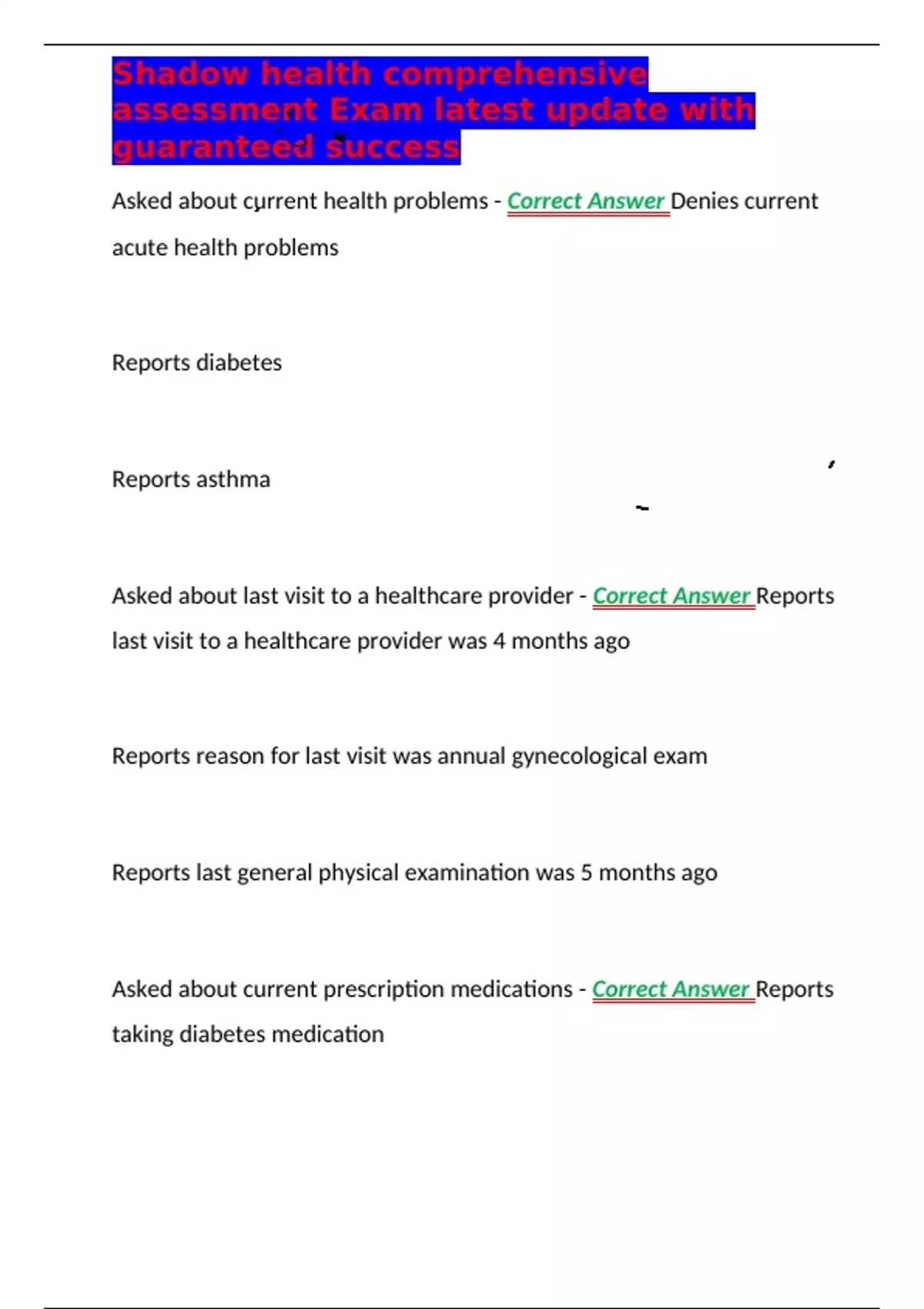 shadow health comprehensive assessment exam latest