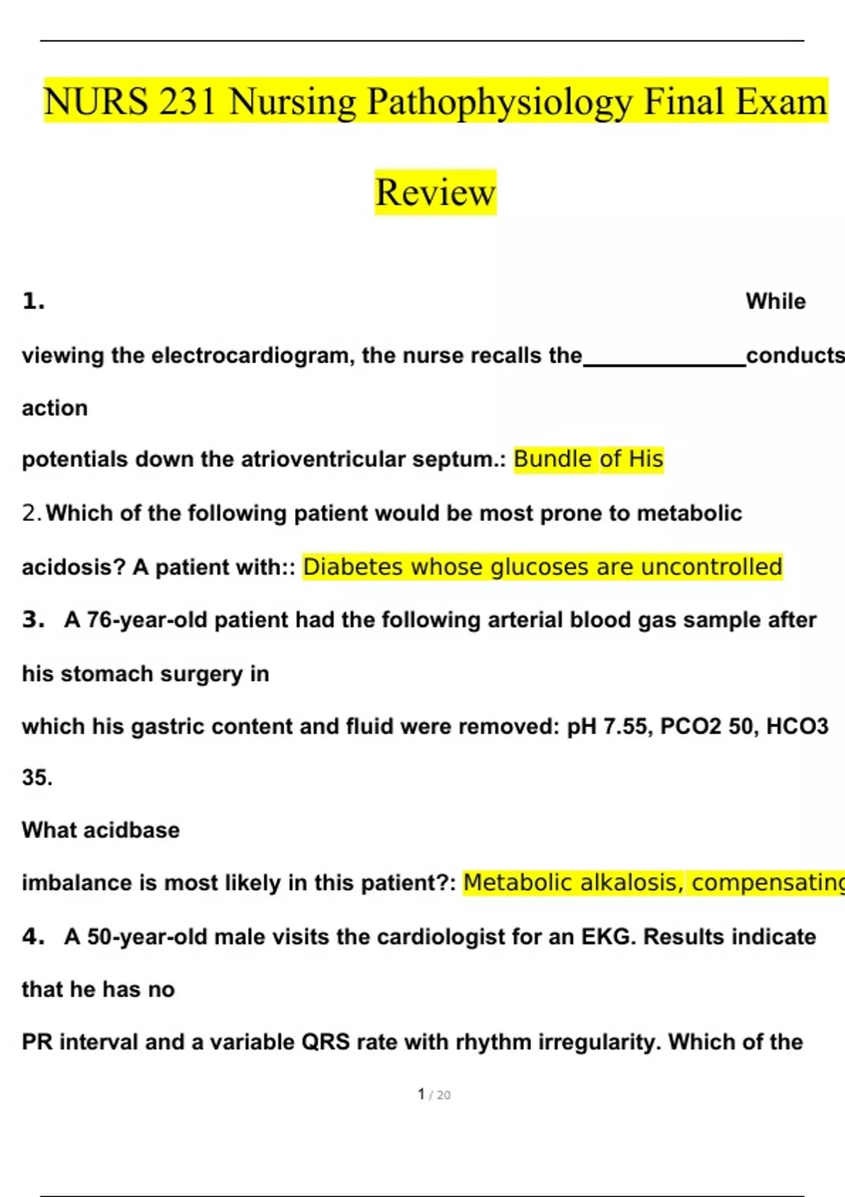 NURS 231 Nursing Pathophysiology Final Exam Review Questions and Answers (2024 / 2025) (Verified Answers)