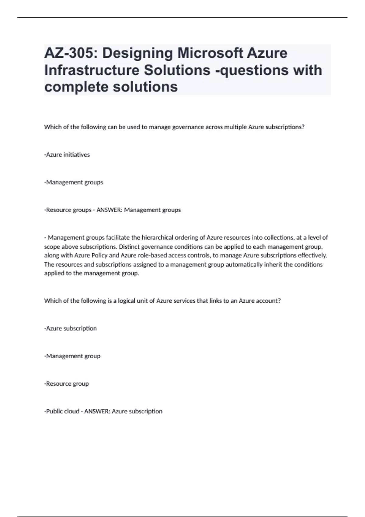 AZ-305 Designing Microsoft Azure Infrastructure Solutions -questions with complete solutions