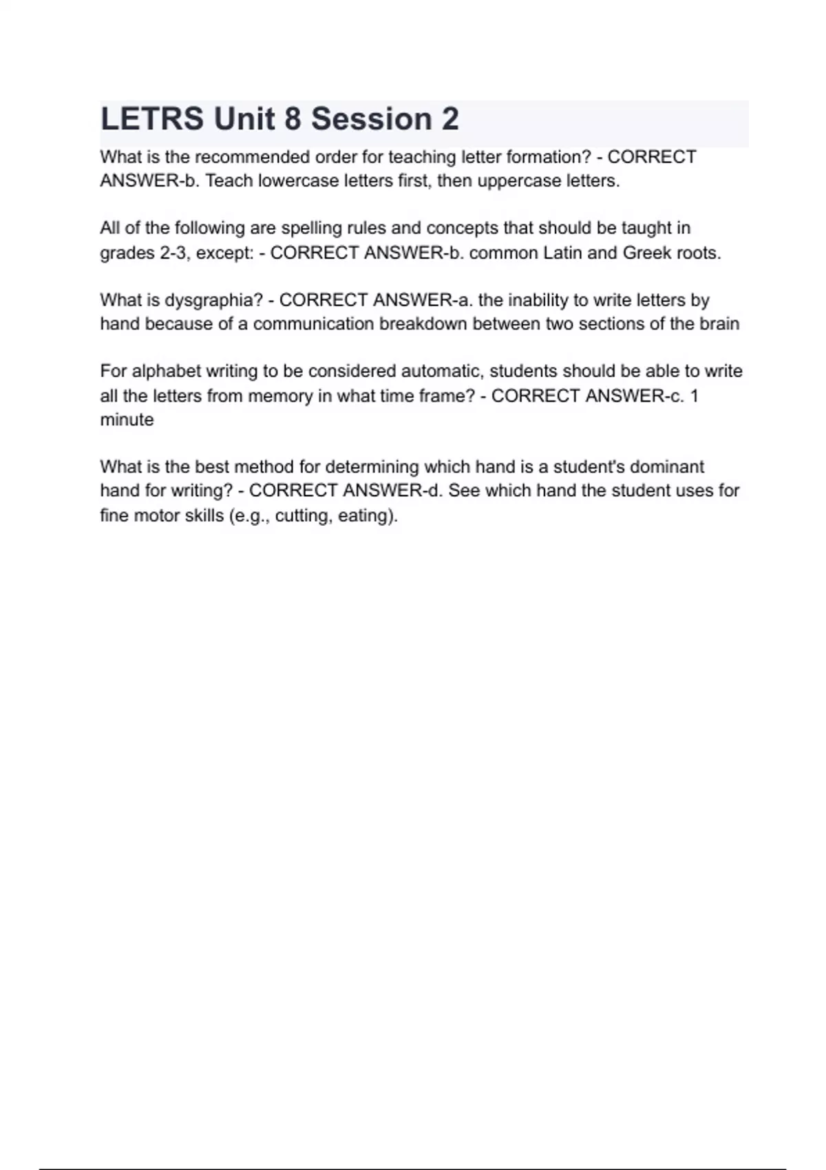 LETRS Unit 8 Session 2 with complete solution