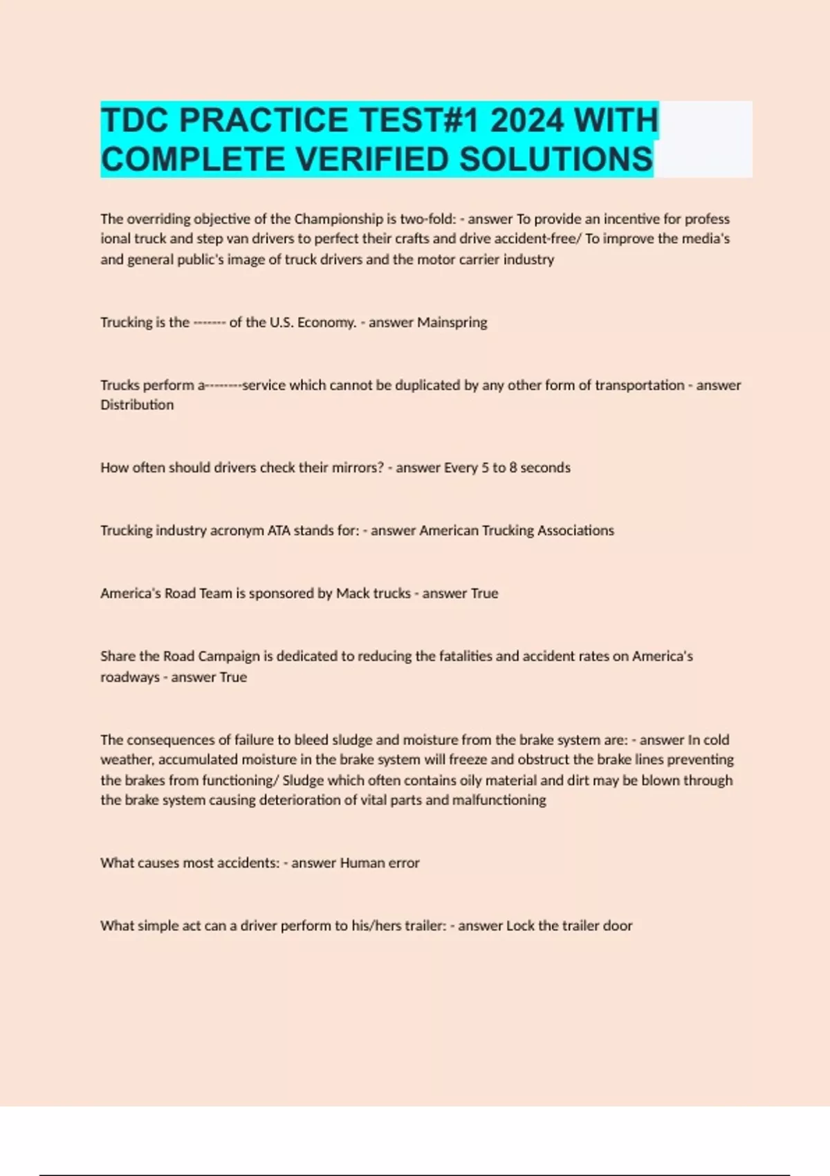 TDC PRACTICE TEST#1 2024 WITH COMPLETE VERIFIED SOLUTIONS