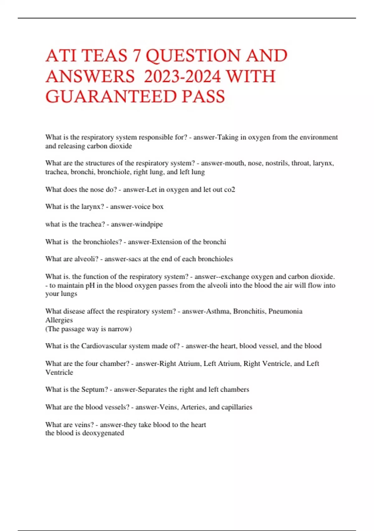 ATI TEAS 7 QUESTION AND ANSWERS WITH GUARANTEED PASS