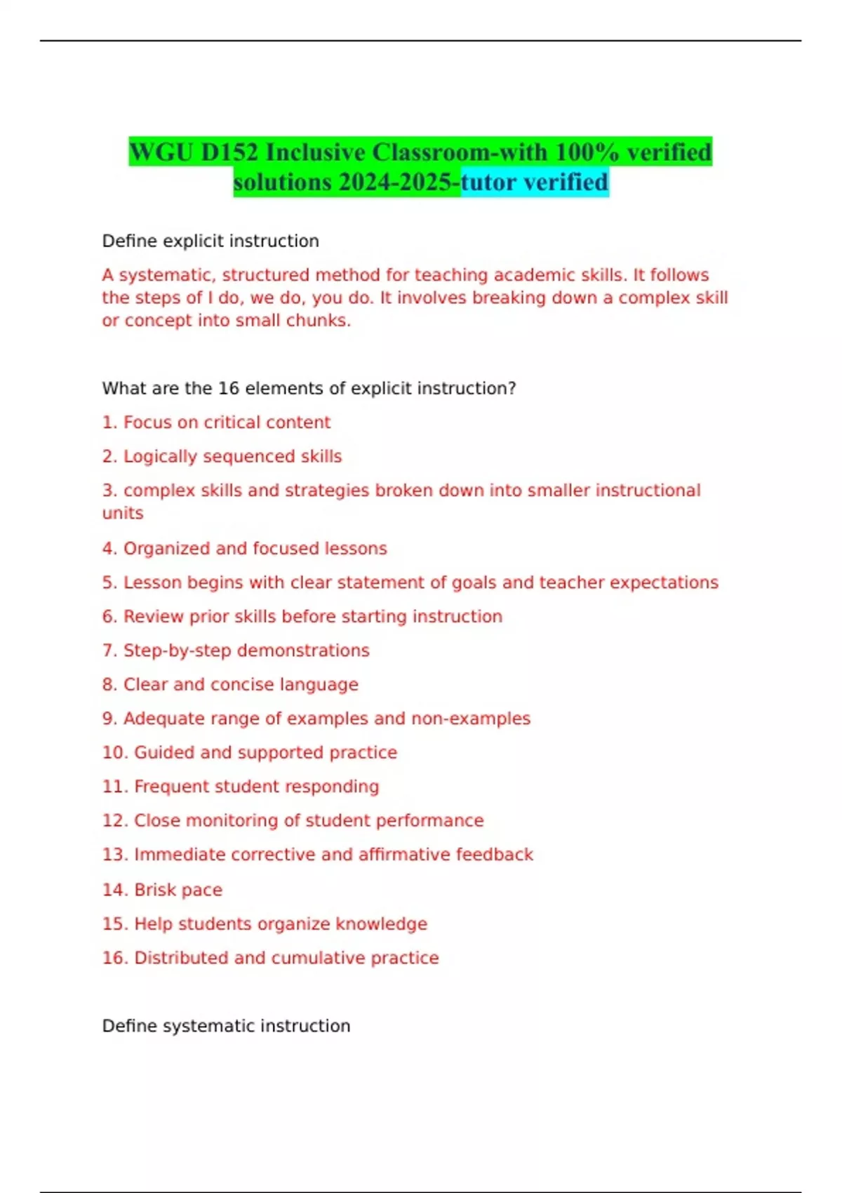 WGU D152 Inclusive Classroom-with 100% verified solutions -tutor verified
