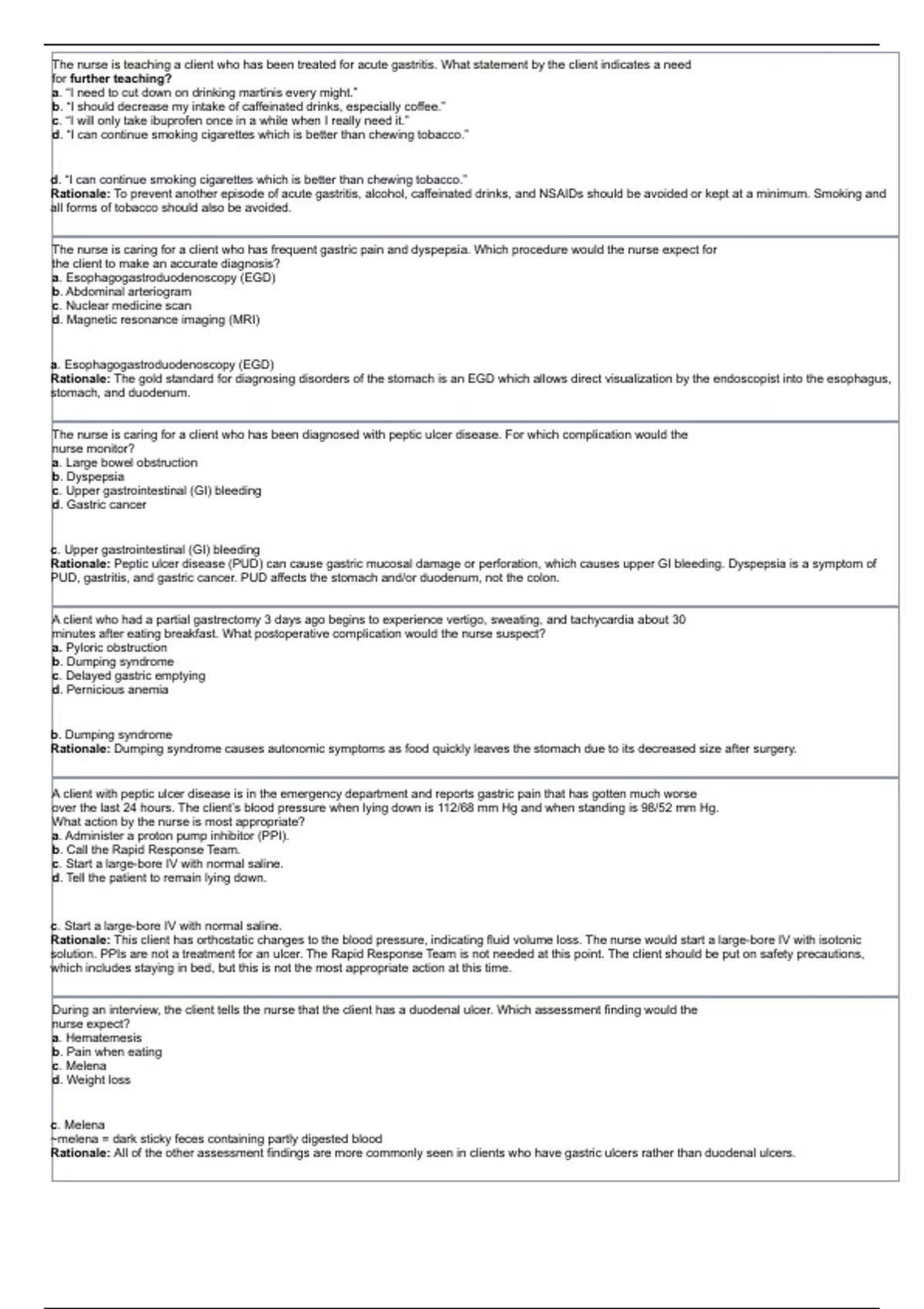Concepts of Care for of Patients With Stomach Disorders Questions with complete rationale Answers| STUDY set11