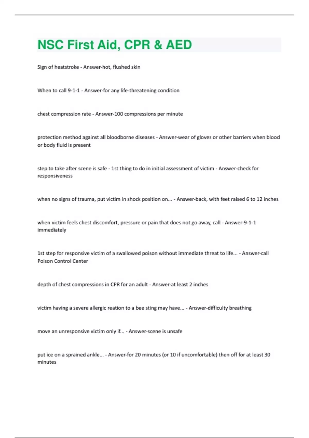 NSC First Aid, CPR & AED Questions And Answers Rated A+ New Update Assured Satisfaction