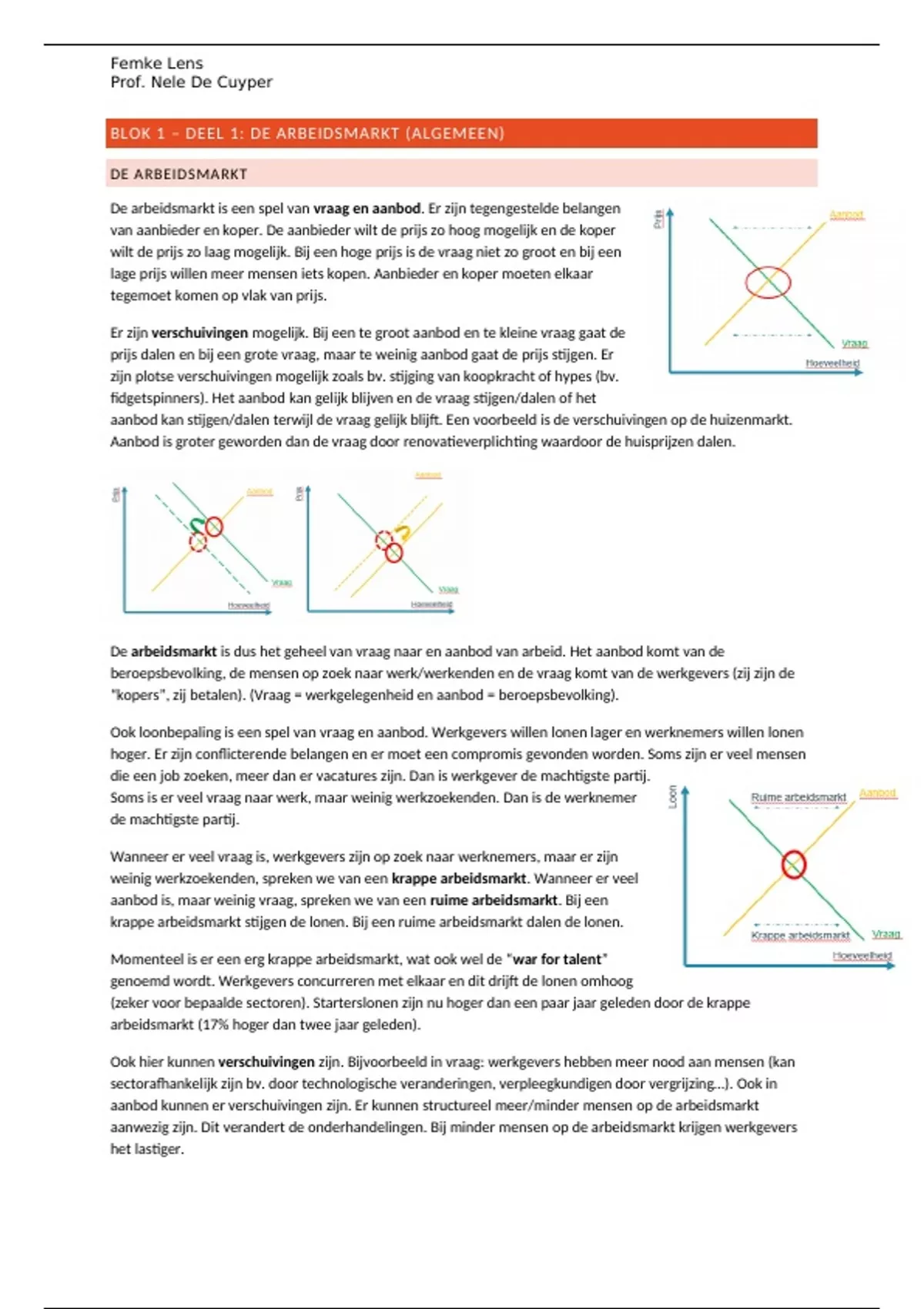 BLOK 1 – DEEL 1: DE ARBEIDSMARKT (ALGEMEEN)