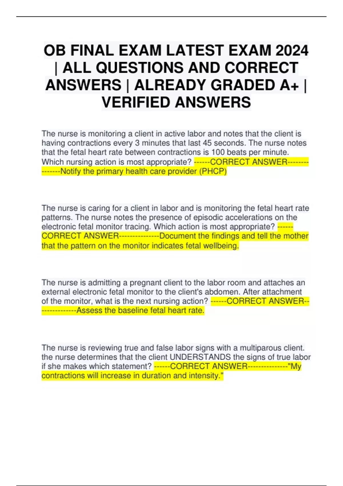 OB FINAL EXAM LATEST EXAM 2024 | ALL QUESTIONS AND CORRECT ANSWERS | ALREADY GRADED A+ | VERIFIED ANSWERS
