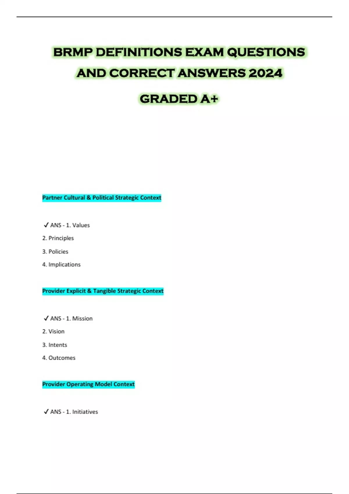 BRMP DEFINITIONS EXAM QUESTIONS AND CORRECT ANSWERS 2024 GRADED A+