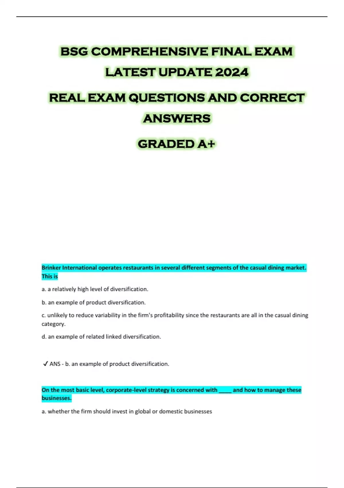BSG COMPREHENSIVE FINAL EXAM LATEST UPDATE 2024 REAL EXAM QUESTIONS AND CORRECT ANSWERS GRADED A+