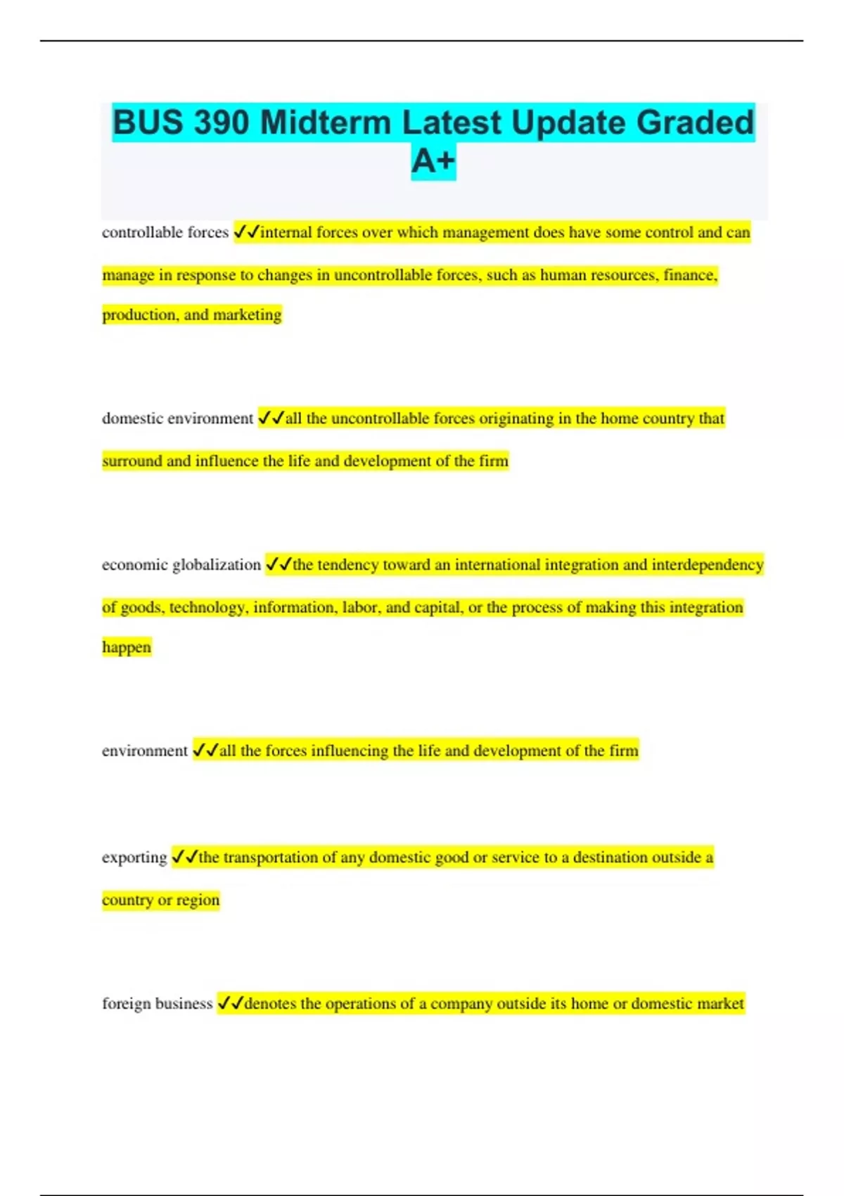 bus 390 midterm latest update graded a