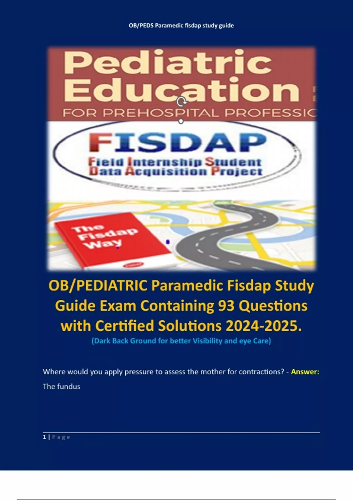 OB/PEDIATRIC Paramedic Fisdap Study Guide Exam Containing 93 Questions with Certified Solutions .