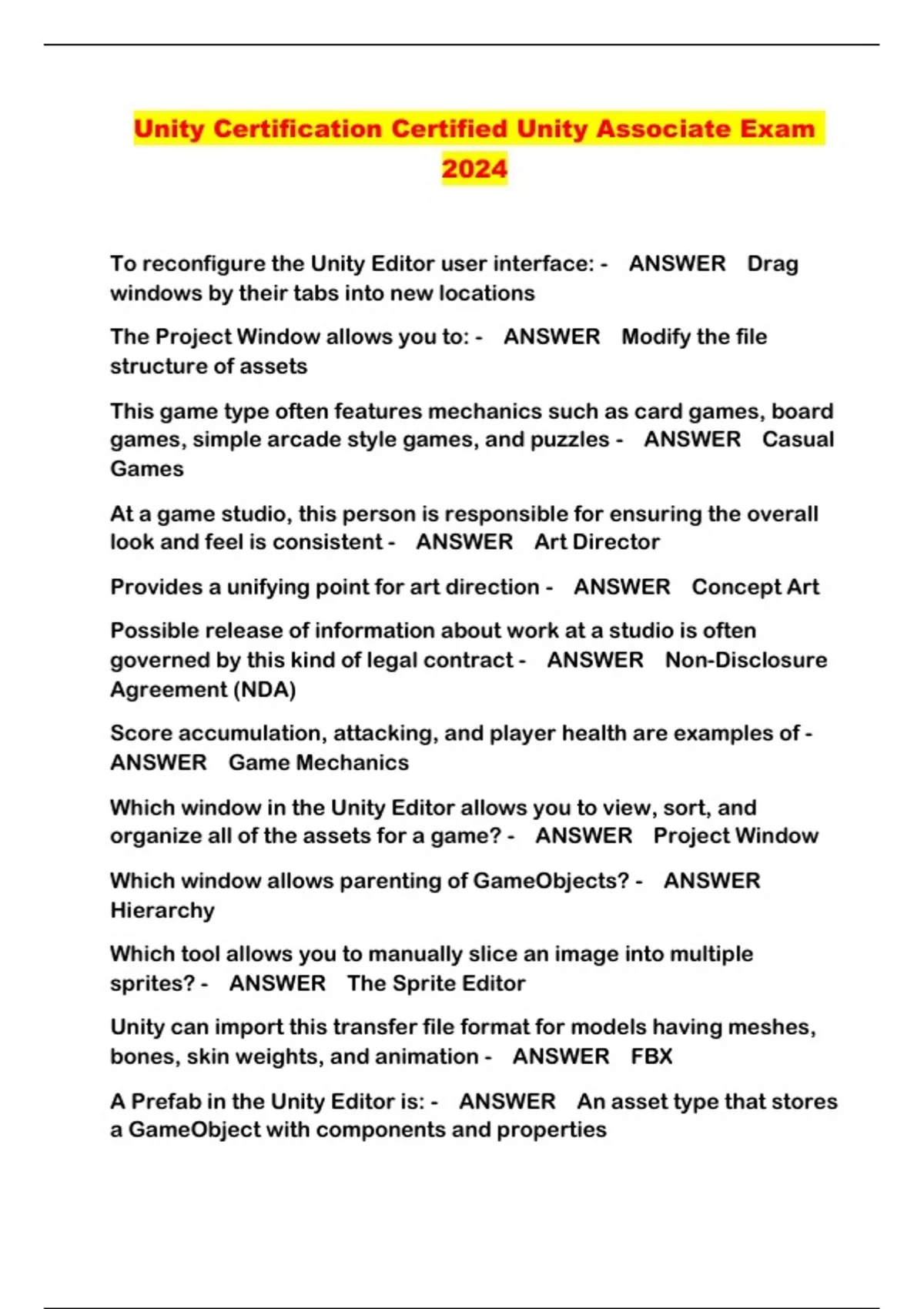Unity Certification Certified Unity Associate Exam 2024...