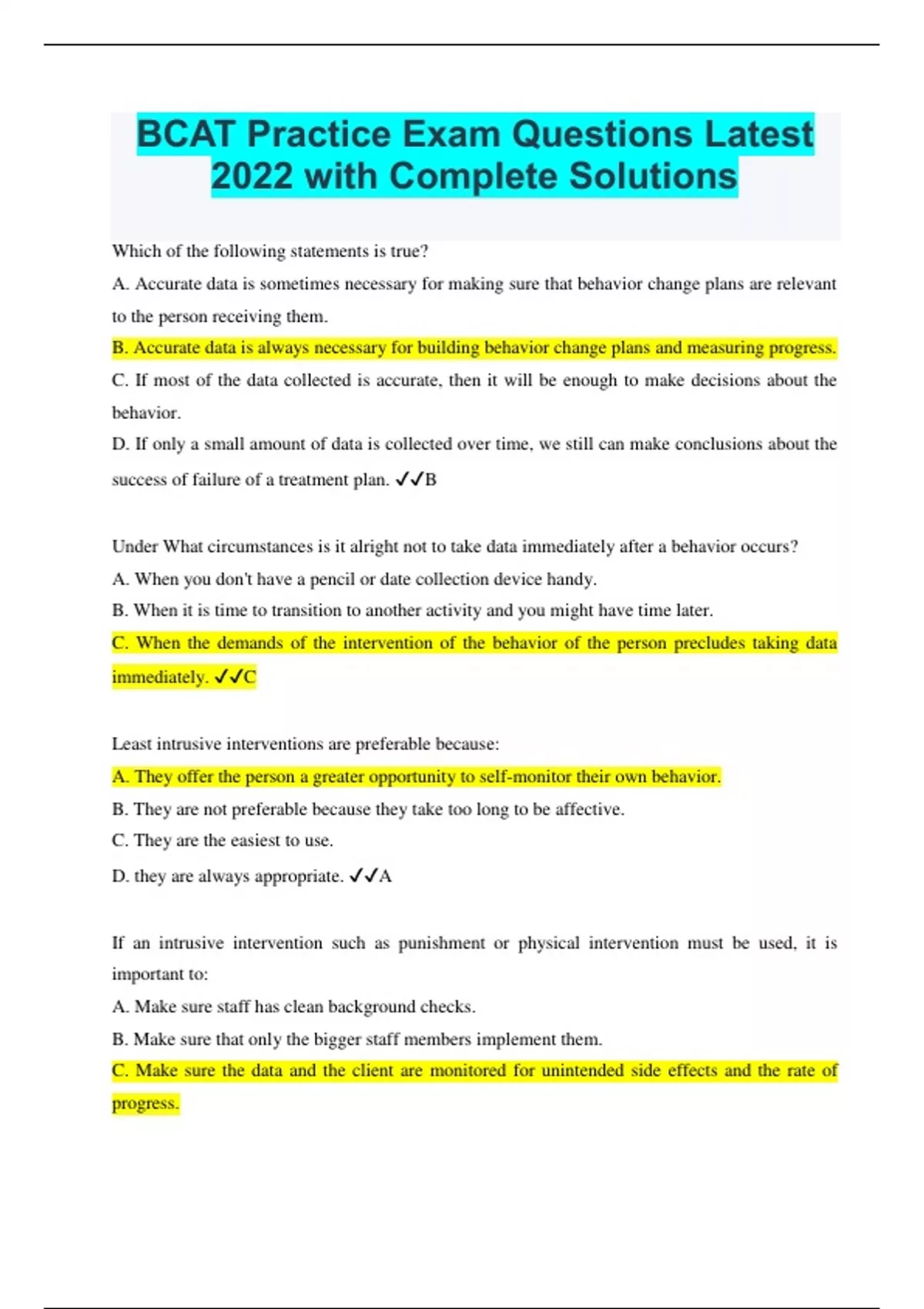 BCAT Practice Exam Questions Latest 2022 with Complete Solutions
