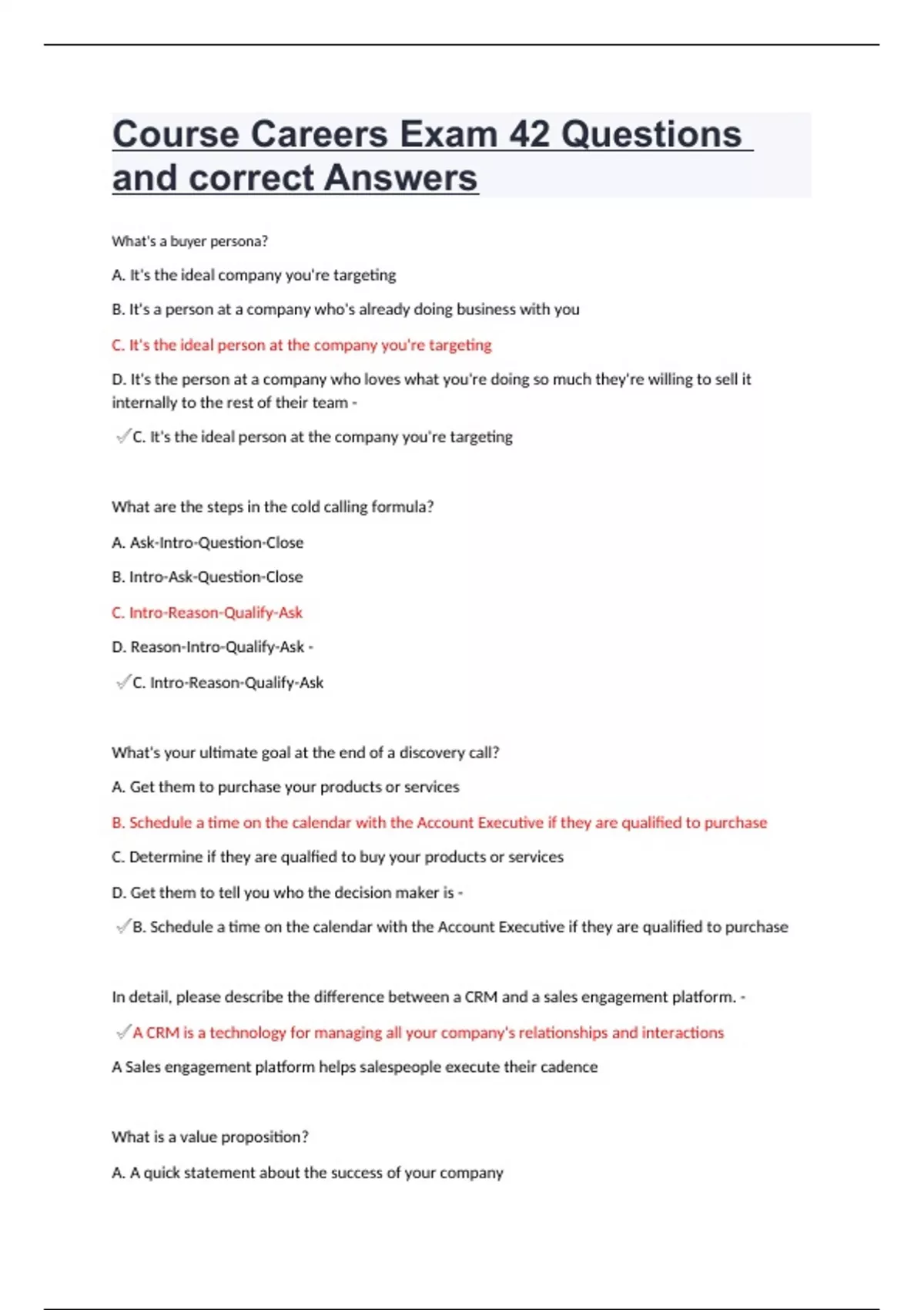 Course Careers Exam 42 Questions and correct Answers