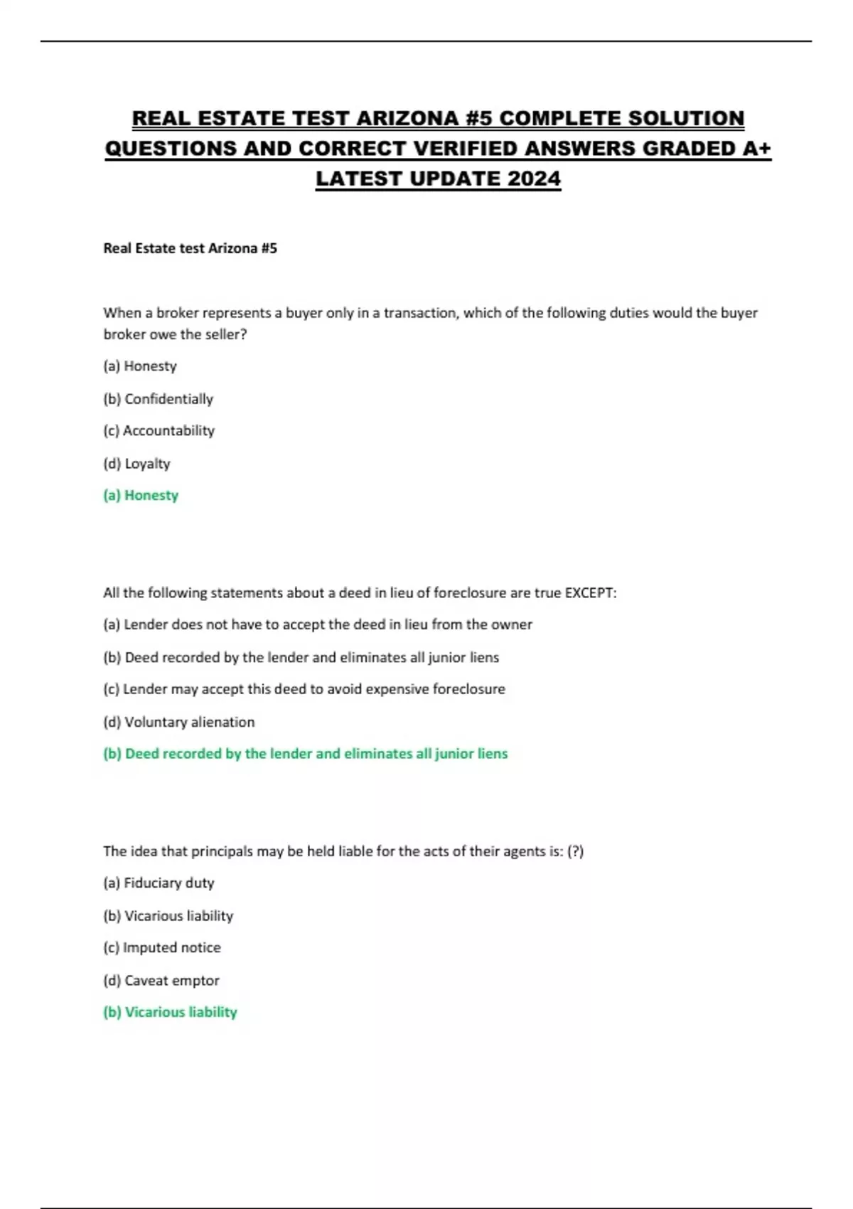 REAL ESTATE TEST ARIZONA #5 COMPLETE SOLUTION QUESTIONS AND CORRECT VERIFIED ANSWERS GRADED A+ LATEST UPDATE 2024