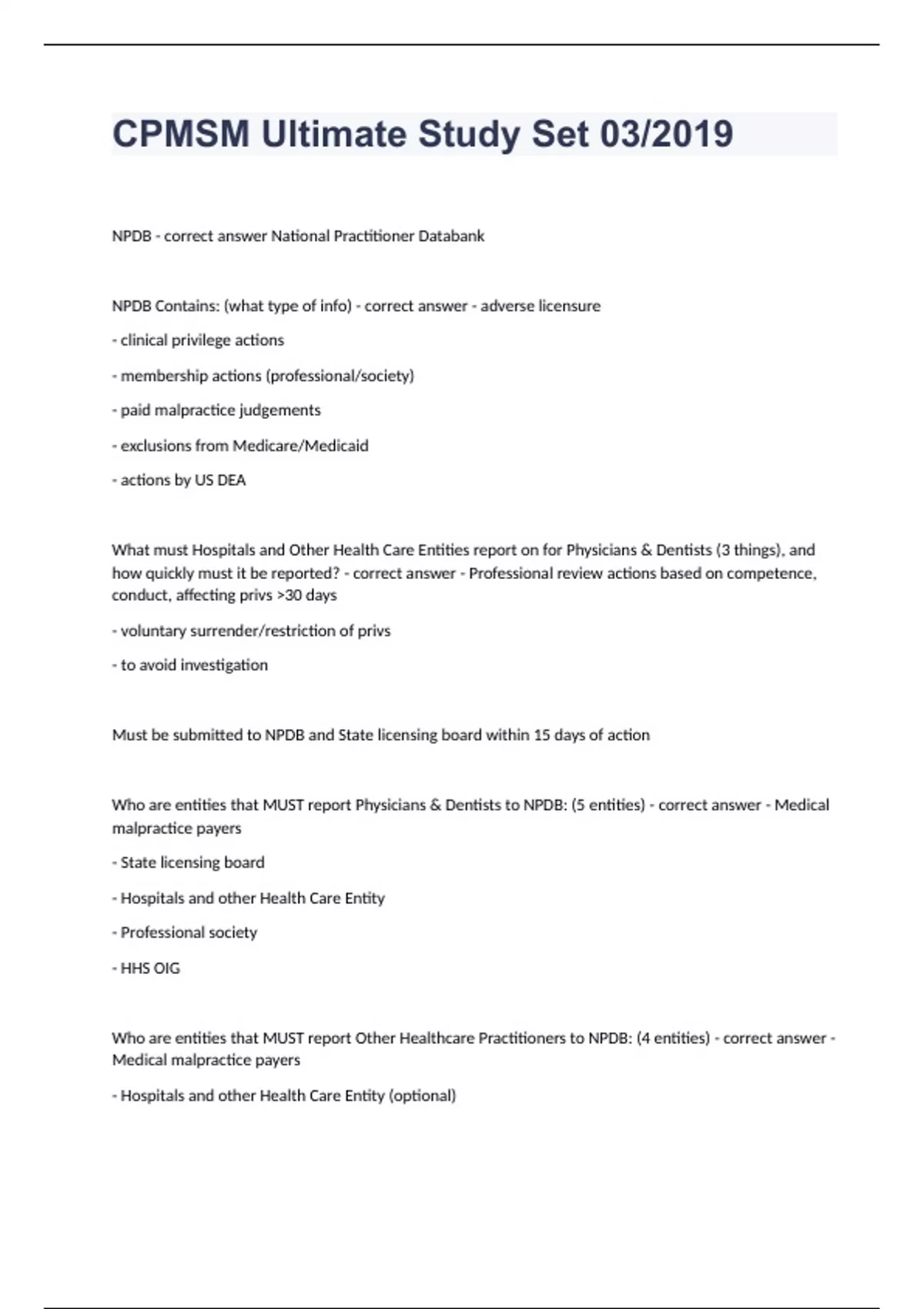 CPMSM Ultimate Study Set 03 2024 questions and answers verified 2024