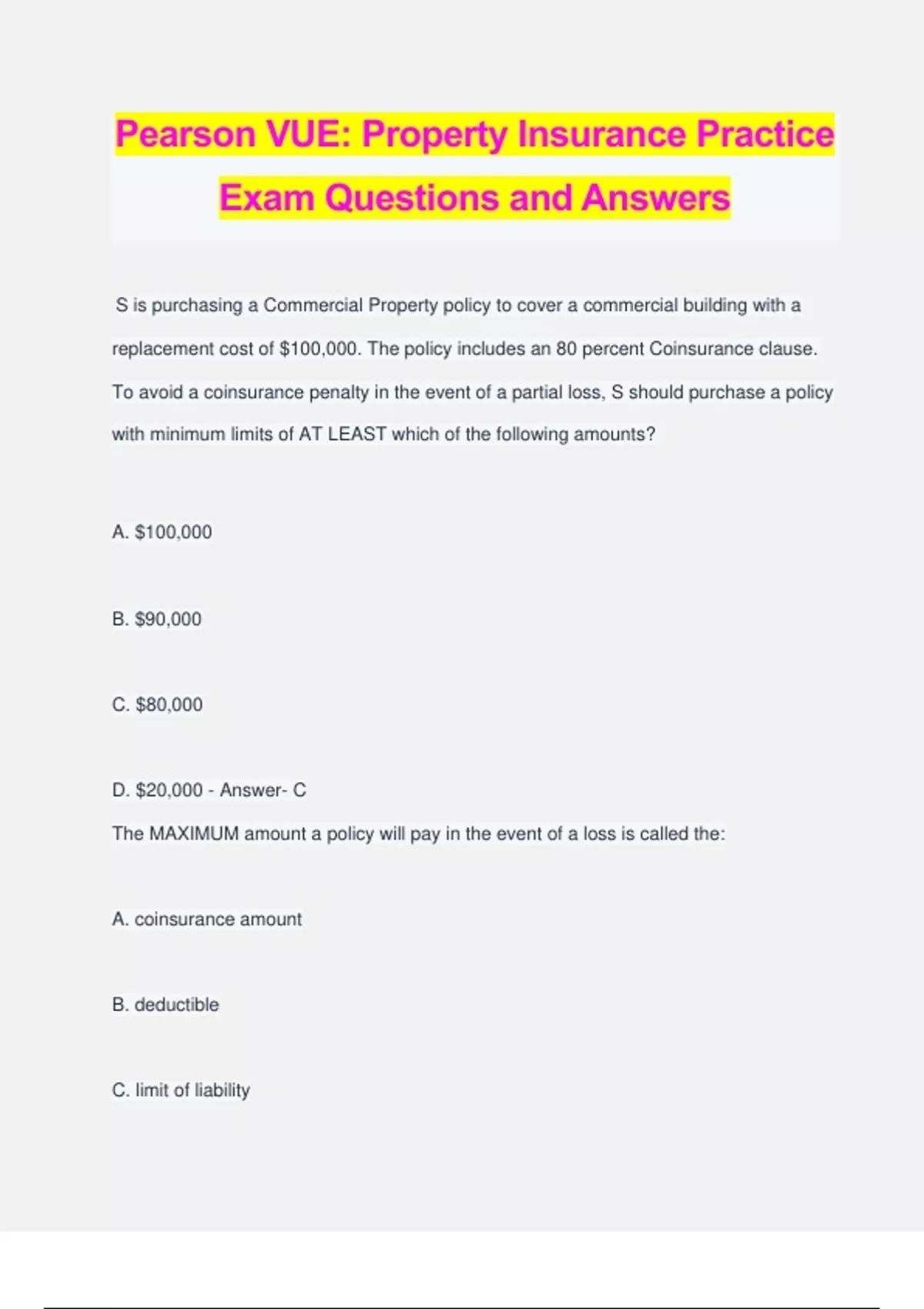 Pearson VUE: Property Insurance Practice Exam Questions and Answers
