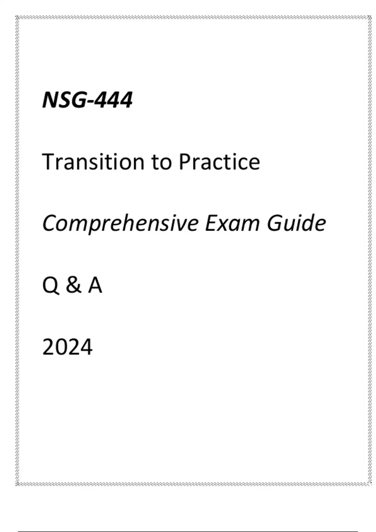 (GCU) NSG-444 TRANSITION TO PRACTICE COMPREHE(GCU) NSG-444 TRANSITION TO PRACTICE COMPREHENSIVE EXAM GUIDE Q & A 2024NSIVE EXAM GUIDE Q & A 2024